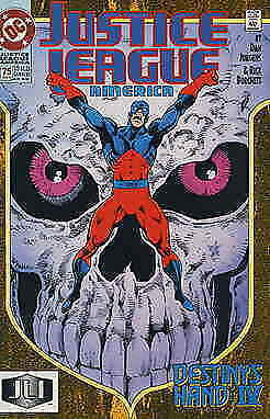 APPEARANCES: Dr. Destiny, Ray II, Maxima, Guy Gardner, Agent Liberty, Wonder Woman, Black Condor II, Green Arrow, Flash II, Martian Manhunter, Firestorm, Red Tornado, Hawkman II, Fire, Booster Gold, Blue Beetle, Atom II, Batman