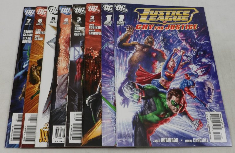 Justice League: Cry for Justice #1-7 is published by DC. Written by James Robinson. Illustrated by Mauro Cascioli. Complete series + variantSeller Information