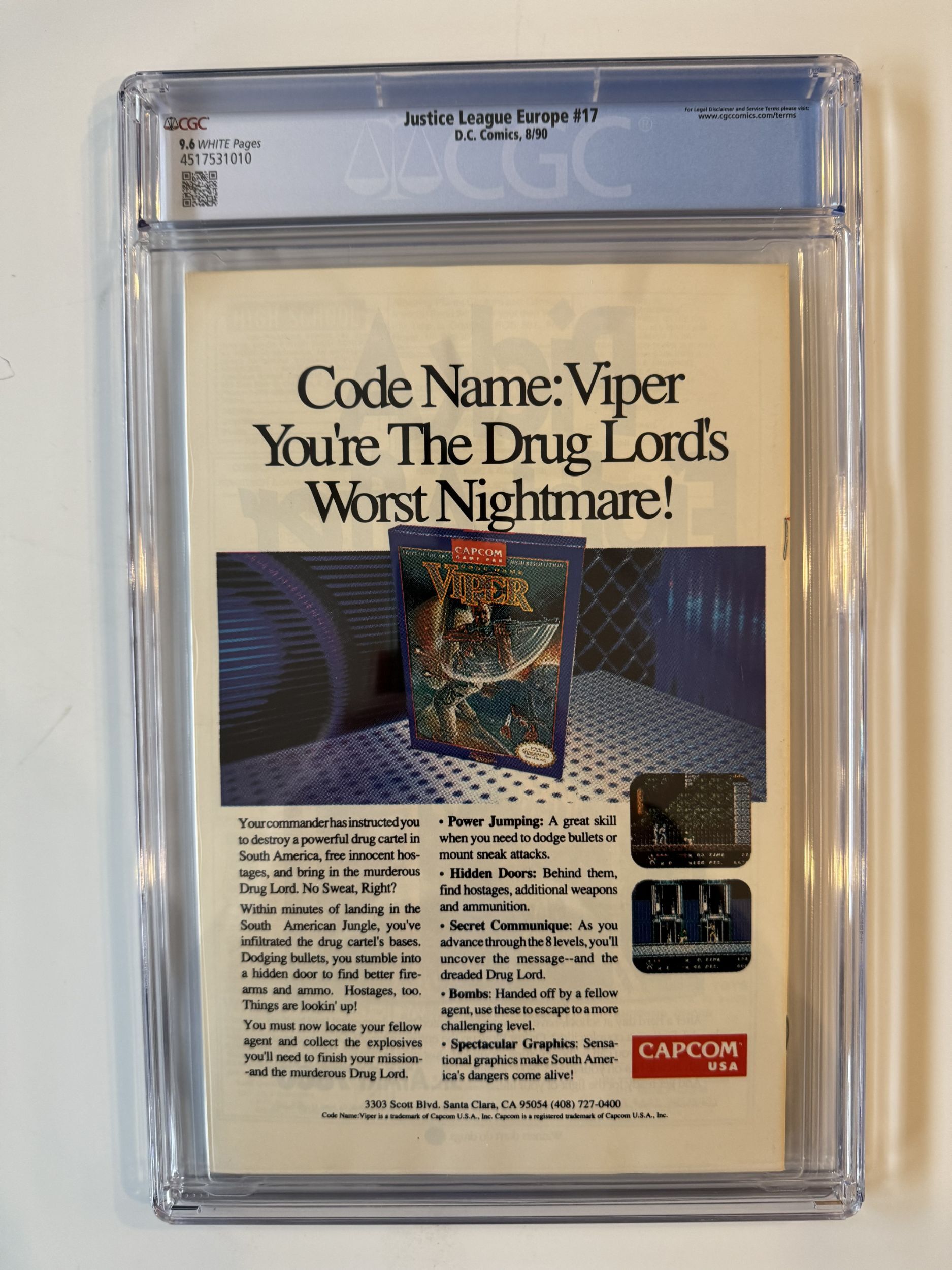 Justice League Europe #17 CGC 9.6 (1990)The pictures above represent the exact item you are going to receive. They are NOT stock pictures. There are no missing pages, rips or cutouts.I am not a professional grader, so please use the pictures above to determine the grade for yourself. I have tried to grade as accurately as possible.