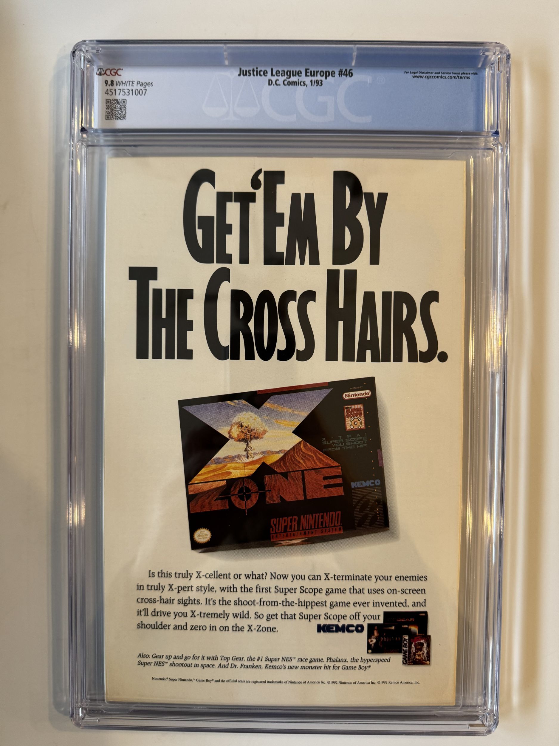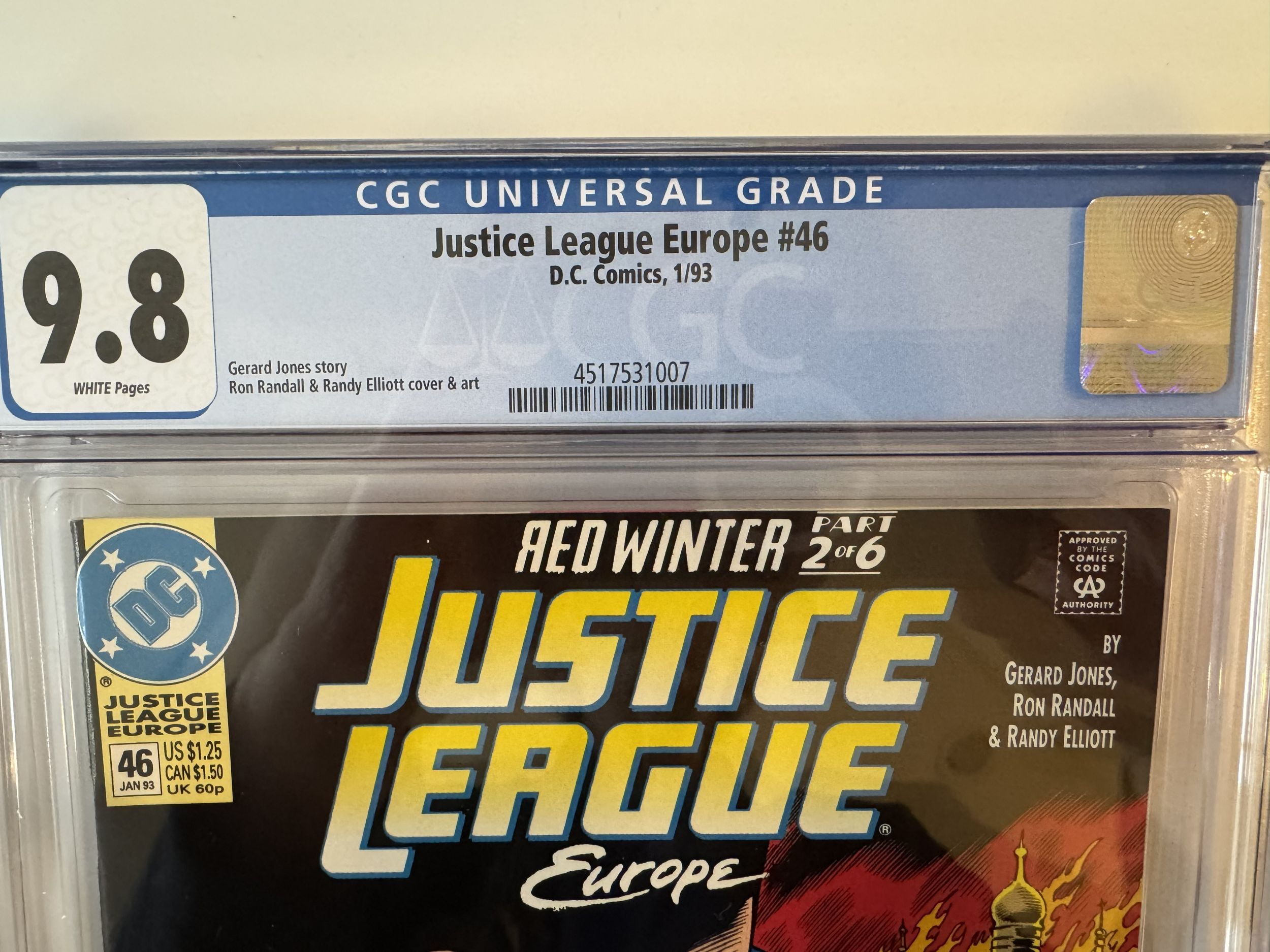 Justice League Europe #46 CGC 9.8 (1993)The pictures above represent the exact item you are going to receive. They are NOT stock pictures. There are no missing pages, rips or cutouts.I am not a professional grader, so please use the pictures above to determine the grade for yourself. I have tried to grade as accurately as possible.
