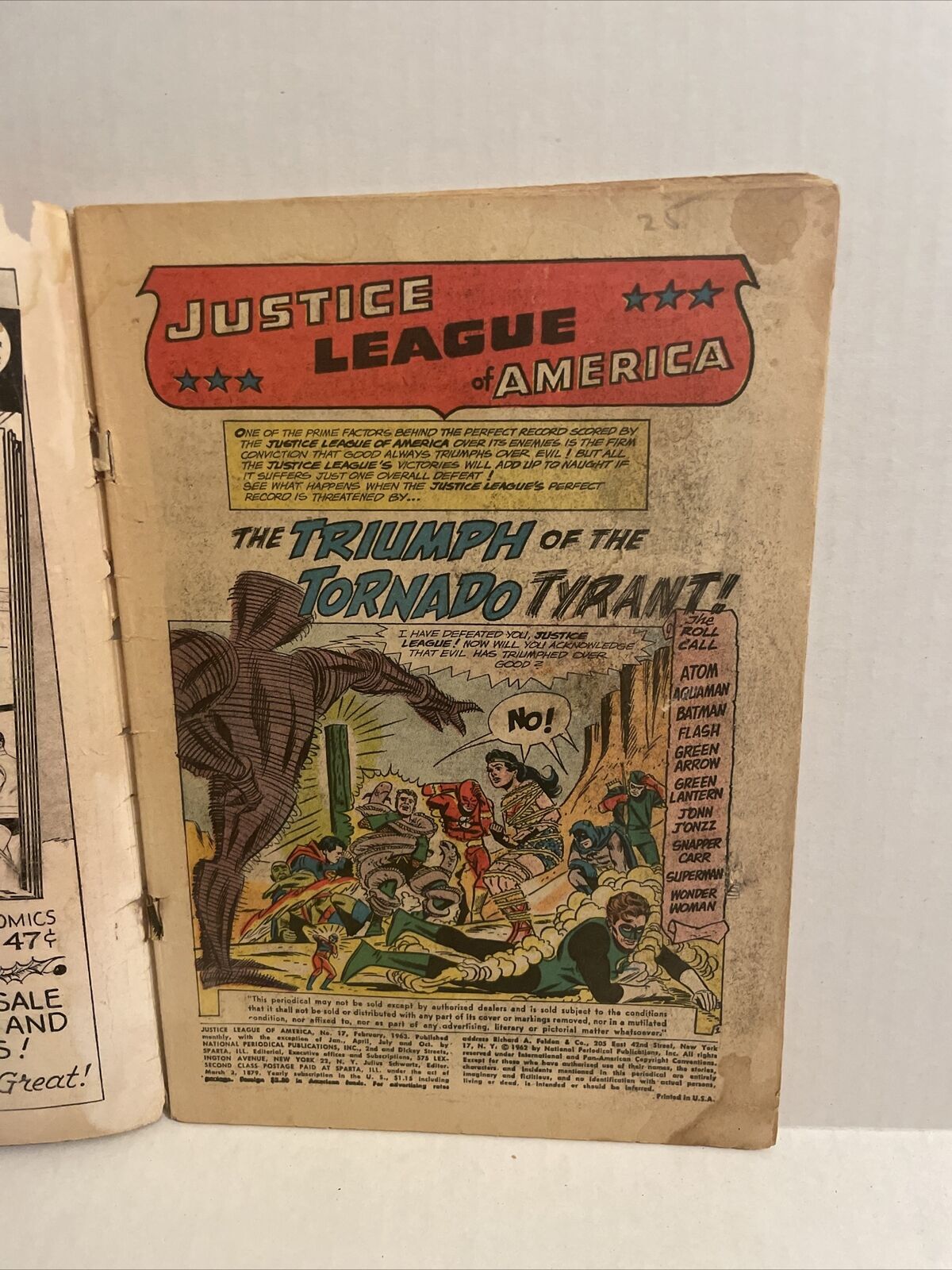 The justice league of America #17 good Condition - creases, cover detached multi tearsI Charge Base Sales Taxes for Ca Purchases