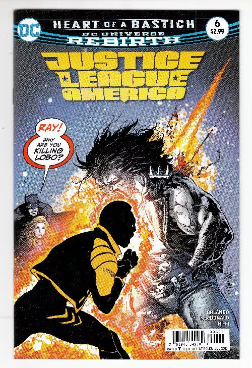 Grade: 9.2 Near Mint-Justice league of america (2016 dc) #6 cvr a ivan reis item number: cxwh-a59907 'mythic' part two! Aegeus's mythic horde continues to steamroll over the battered landscape of penn city, and the only thing standing in their path is�the atom?? Also: lobo is laid out, his healing factor neutralized, and the only thing that could possibly save him requires a level of violence that we may not be allowed to print! Rated t