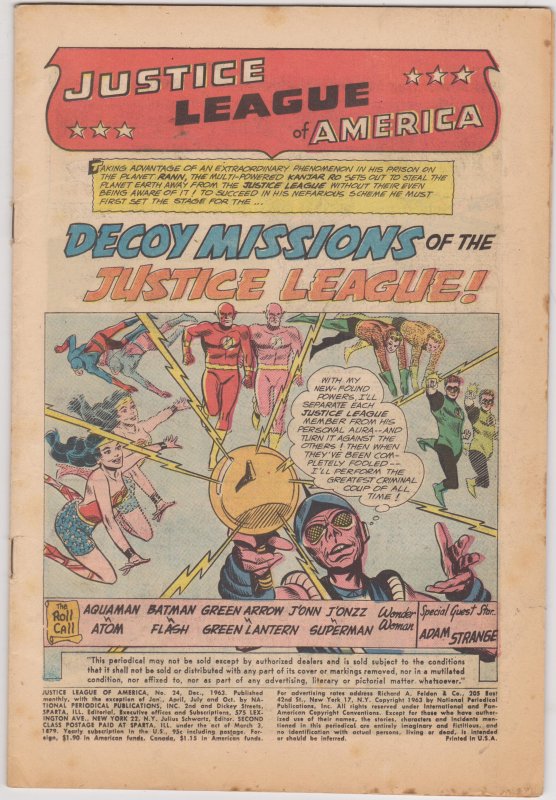 Justice League of America #24 by DC Comics copyright 1965. I have graded the comic book, using the Overstreet Grading Guide, at POOR with the following defects: Cover missing Light stress marks along the spine. The corners are rounded. There is yellowing of the pages.Seller Information