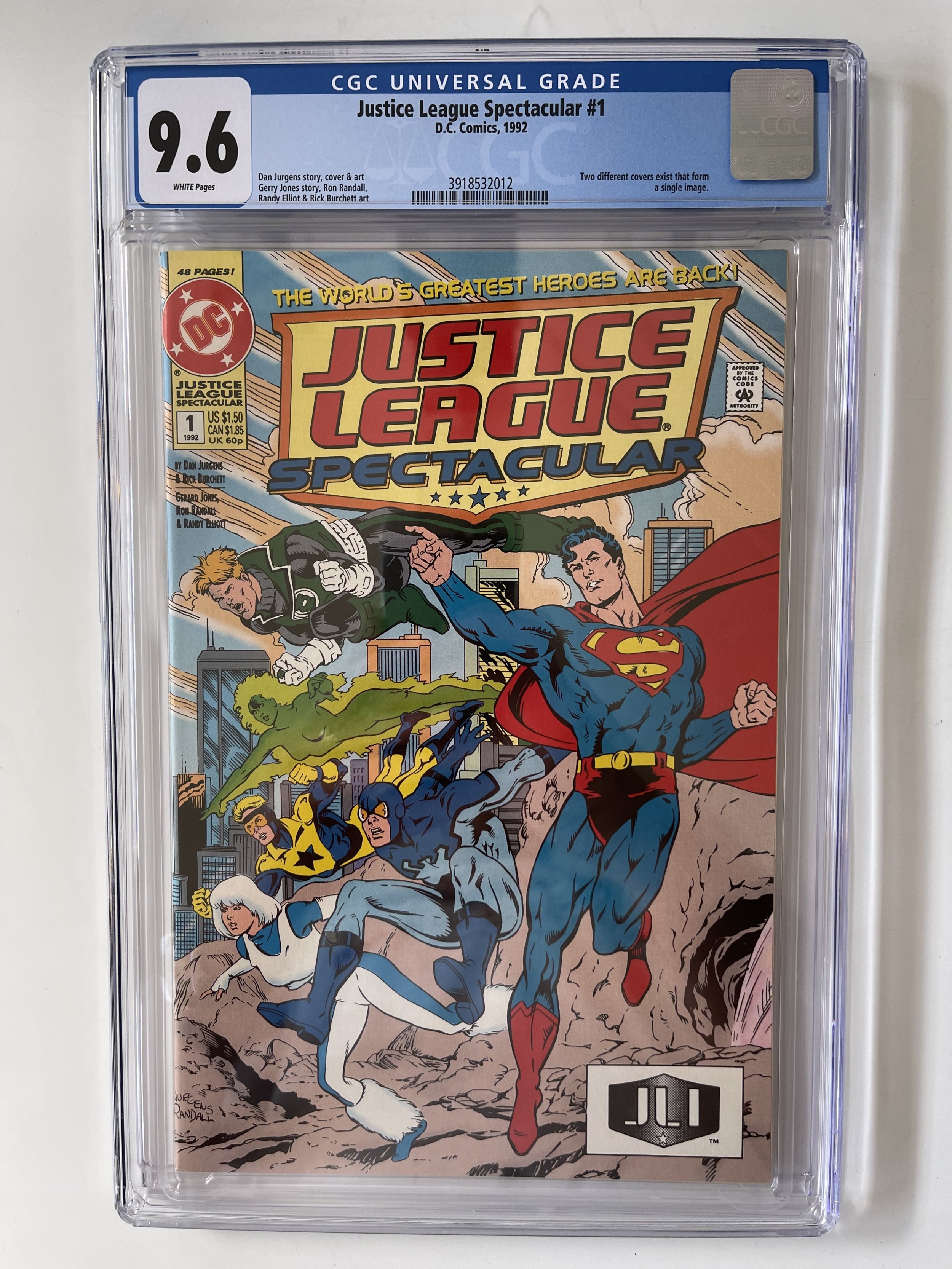 Justice League Spectacular #1 CGC 9.6 - Green Lantern Flash (1992)The pictures above represent the exact item you are going to receive. They are NOT stock pictures. There are no missing pages, rips or cutouts.I am not a professional grader, so please use the pictures above to determine the grade for yourself. I have tried to grade as accurately as possible.