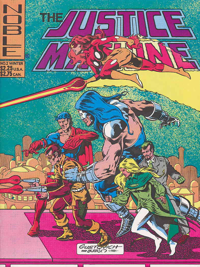 Item: Justice Machine (Noble) #2 | Publisher: Noble | Cover Date: December 1981 | Writer: Mike Gustovich | Artist: Mike Gustovich, Charlie Wallace, Bill Reinhold | Cover Artist: Mike Gustovich | Storylines: Return t ... Read More