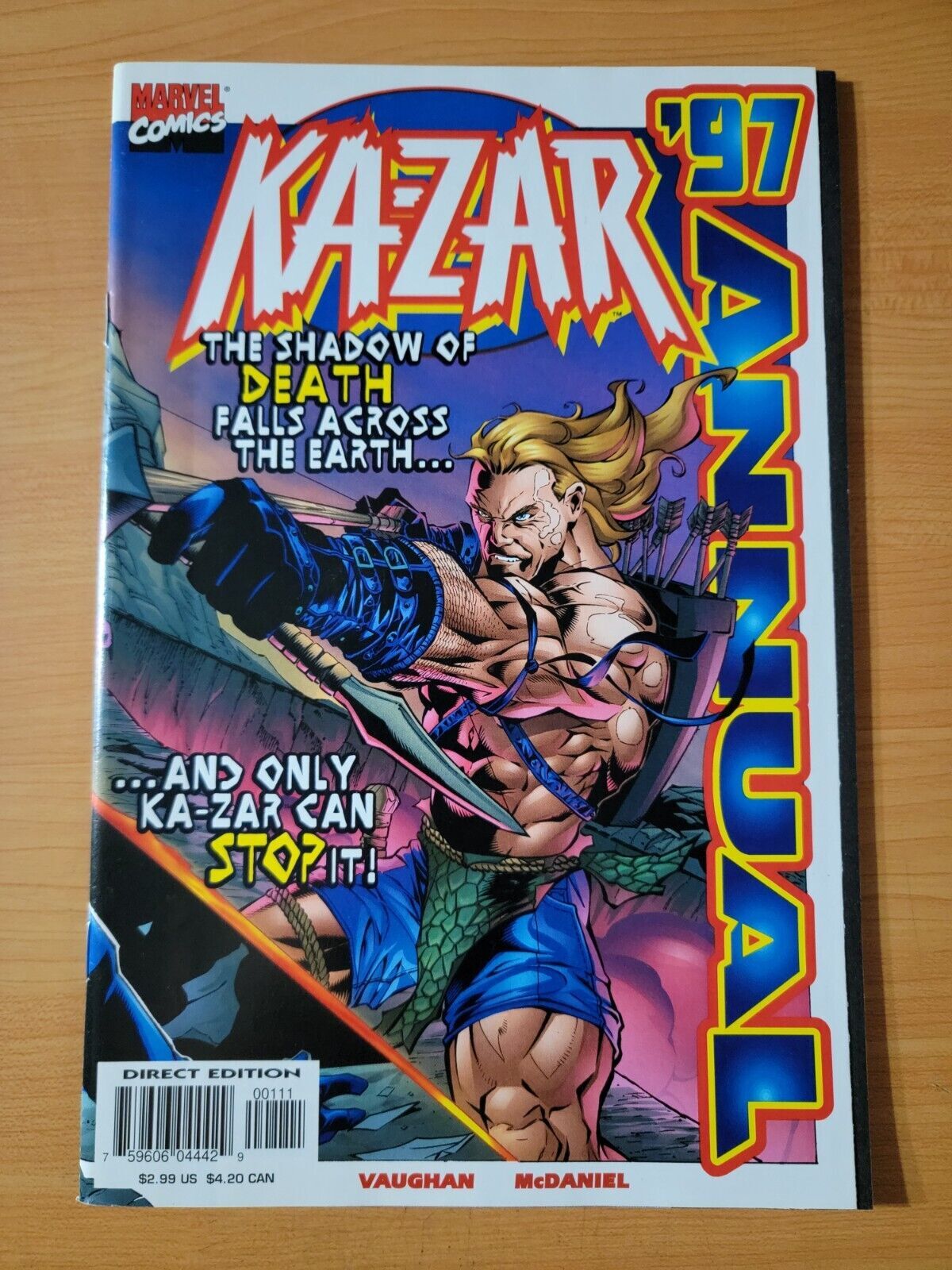 Item DescriptionKa-Zar Annual '97 #1Publisher: Marvel ComicsPublished: 1997Item Grade/ConditionGrade: NEAR MINTFor more information about this grade and other grades, please see our grading standards.~ WE TAKE HIGH DEFINITION PICTURES OF OUR COMICS ~ For more detail use the ZOOM Function and check them out yourself! ~Shipping Info:United States: Comic Book & Magazine Orders of all sizes, big and small ship for a flat Single Shipping ChargeInternational: We use Calculated Shipping! ~ This insures that you get the LOWEST POSSIBLE COST! ~ Please give us one business day to calculate large orders! The Calculator for Hip is pretty bad for international, contact us if you are looking to order multiple books so we can help you make it work on the back end! As a courtesy to our customers, we insure all orders over 50$ US ~ YOU DONT PAY EXTRA!Delivery TimeWe process and ship all orders within 1 business days. Once shipped, estimated U.S. transit time is 2-10 business days; international 14-21 business days.(Orders placed on Friday afternoon as well as weekends will be shipped the next business day as we do not ship on the weekends).PackingOmnomax Traders has mastered packing to ensure our orders of a "damage-free transport."Using the following methods, we have seen a nearly perfect 99% success rate for undamaged comics!Here is how our orders ship:All Orders :Bagged AND Boarded, ALWAYS NO EXCEPTIONS!Shipped in a Gemini Comic Mailer OR Tightly secured between 4x stiff pieces of corrugated cardboard (double Sandwiched)Sealed on all 4 sides with strong packing tape (Items doesn't even wiggle).:*Now this method is nearly perfect! however we have seen damage happen to items ( only once or twice a year ) ~ this is often due to bad handling by the postal service. Always remember to contact us if this happens! we are committed to quality service!*Offers History