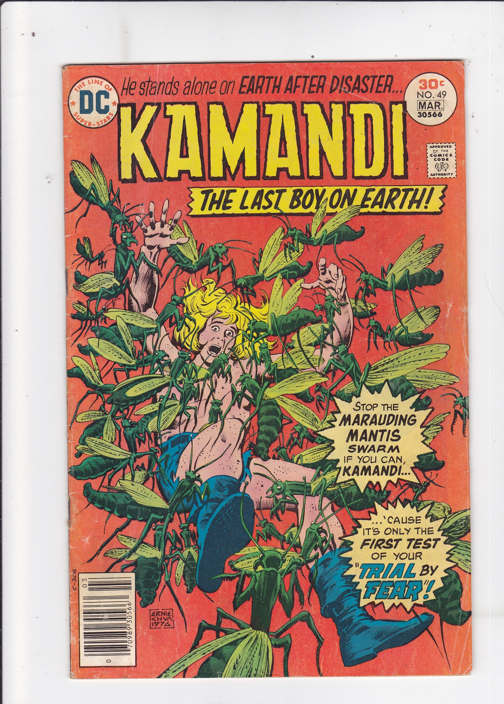 Kamandi #49 by DC Comics copyright 1978. I have graded the comic book, using the Overstreet Grading Guide at VERY GOOD with the following defects: Light stress marks along the spine. The corners are rounded. There are light folds through out cover. There is some yellowing of the pages.Seller Information