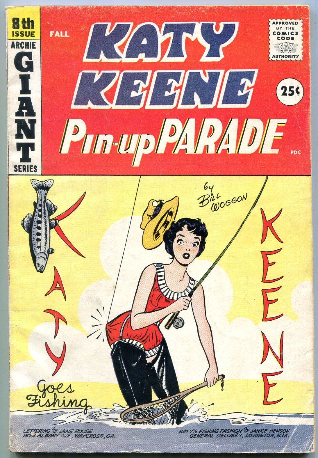 Grade: VG+Katy Keene Pin-Up Parade #8 1959- Mad Comics Parody- Bill Woggon VG+ Fashions, pin-ups, paper dolls. Giant. Mad comics parody features Alfred E Newman, Basil Woverton and Peanuts. Grade: VG+ SKU: U2-111-447