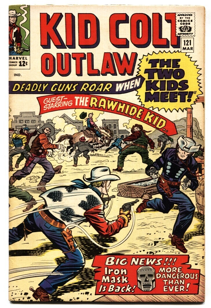 Grade: FN KID COLT OUTLAW #121 comic book-Western-Marvel- 1965 FN Rawhide Kid appearance. Stan Lee story, Jack Keller and Larry Lieber art, Jack Kirby and Chic Stone cover Grade: FN SKU: U2-99-297