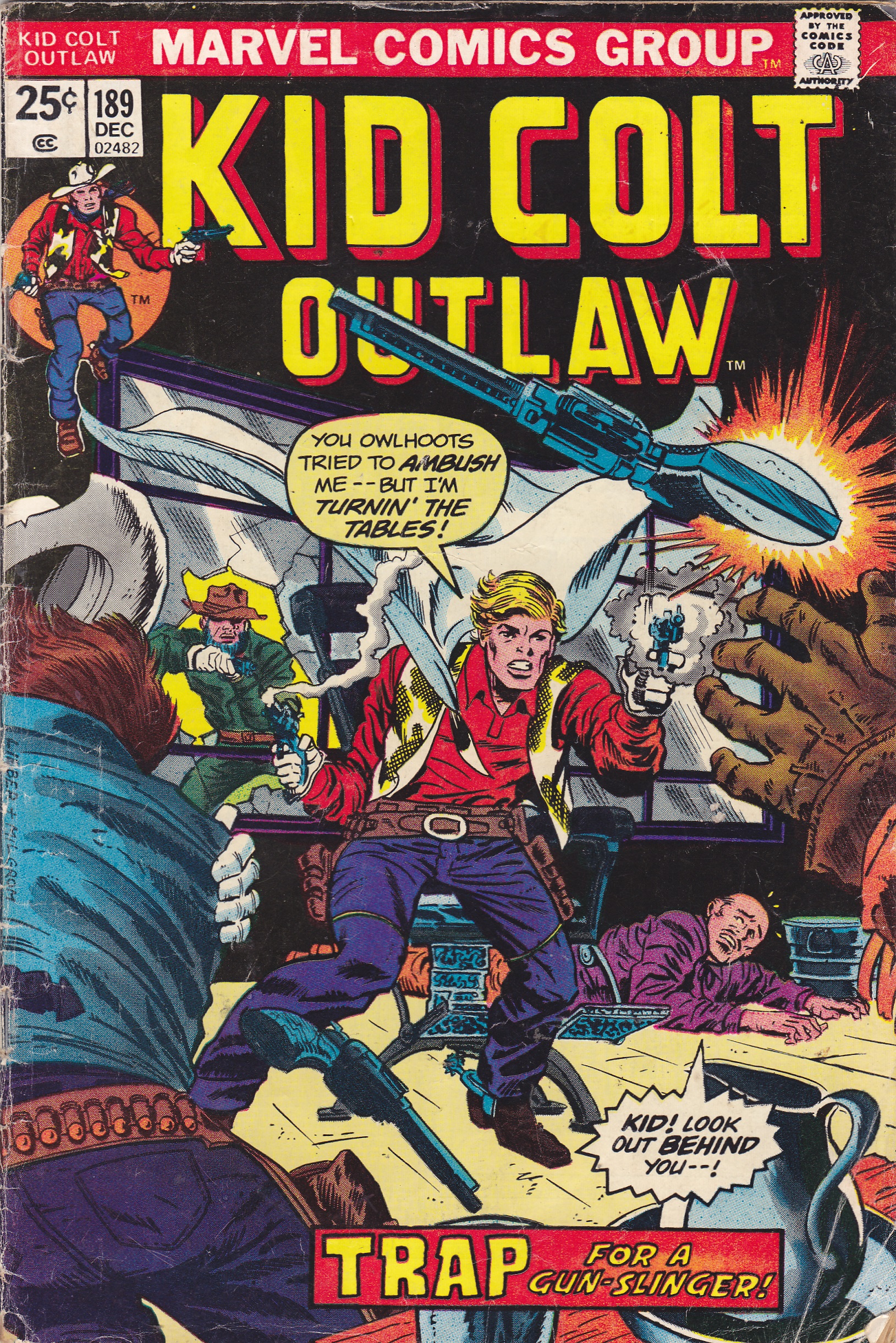 Kid Colt Outlaw #189 by Marvel Comics copyright 1972. I have graded the comic book, using the Overstreet Grading Guide, at VERY GOOD with the following defects: Light stress marks along the spine. The corners are rounded. There are folds in the lower right corner. There is some yellowing of the pages.Seller Information
