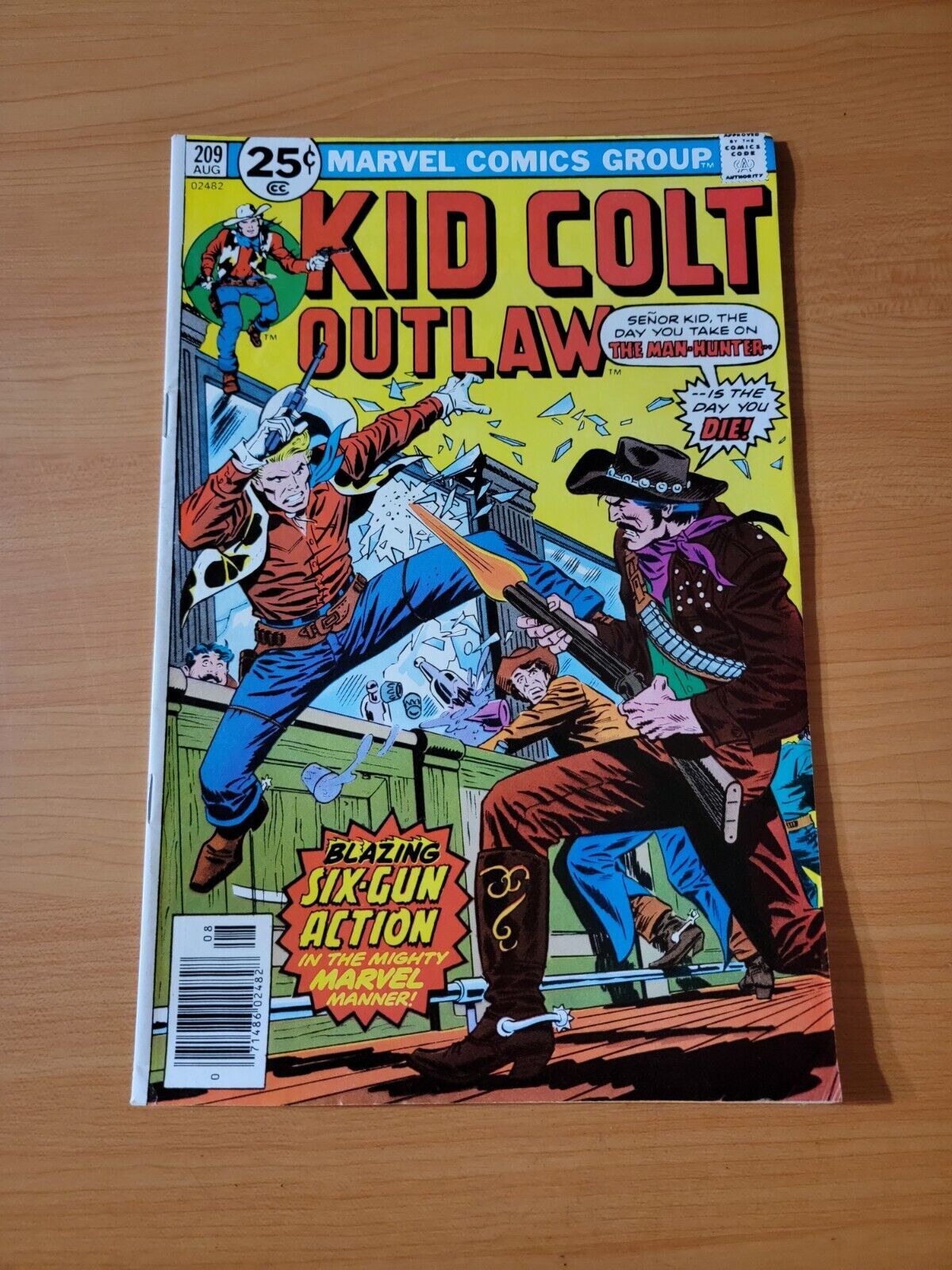 Item DescriptionKid Colt Outlaw #209Publisher: Marvel ComicsPublished: 1976Item Grade/ConditionGrade: VERY FINE - NEAR MINTFor more information about this grade and other grades, please see our grading standards.~ WE TAKE HIGH DEFINITION PICTURES OF OUR COMICS ~ For more detail use the ZOOM Function and check them out yourself! ~Shipping Info:United States: Comic Book & Magazine Orders of all sizes, big and small ship for a flat Single Shipping ChargeInternational: We use Calculated Shipping! ~ This insures that you get the LOWEST POSSIBLE COST! ~ Please give us one business day to calculate large orders! The Calculator for Hip is pretty bad for international, contact us if you are looking to order multiple books so we can help you make it work on the back end! As a courtesy to our customers, we insure all orders over 50$ US ~ YOU DONT PAY EXTRA!Delivery TimeWe process and ship all orders within 1 business days. Once shipped, estimated U.S. transit time is 2-10 business days; international 14-21 business days.(Orders placed on Friday afternoon as well as weekends will be shipped the next business day as we do not ship on the weekends).PackingOmnomax Traders has mastered packing to ensure our orders of a "damage-free transport."Using the following methods, we have seen a nearly perfect 99% success rate for undamaged comics!Here is how our orders ship:All Orders :Bagged AND Boarded, ALWAYS NO EXCEPTIONS!Shipped in a Gemini Comic Mailer OR Tightly secured between 4x stiff pieces of corrugated cardboard (double Sandwiched)Sealed on all 4 sides with strong packing tape (Items doesn't even wiggle).:*Now this method is nearly perfect! however we have seen damage happen to items ( only once or twice a year ) ~ this is often due to bad handling by the postal service. Always remember to contact us if this happens! we are committed to quality service!*Offers History