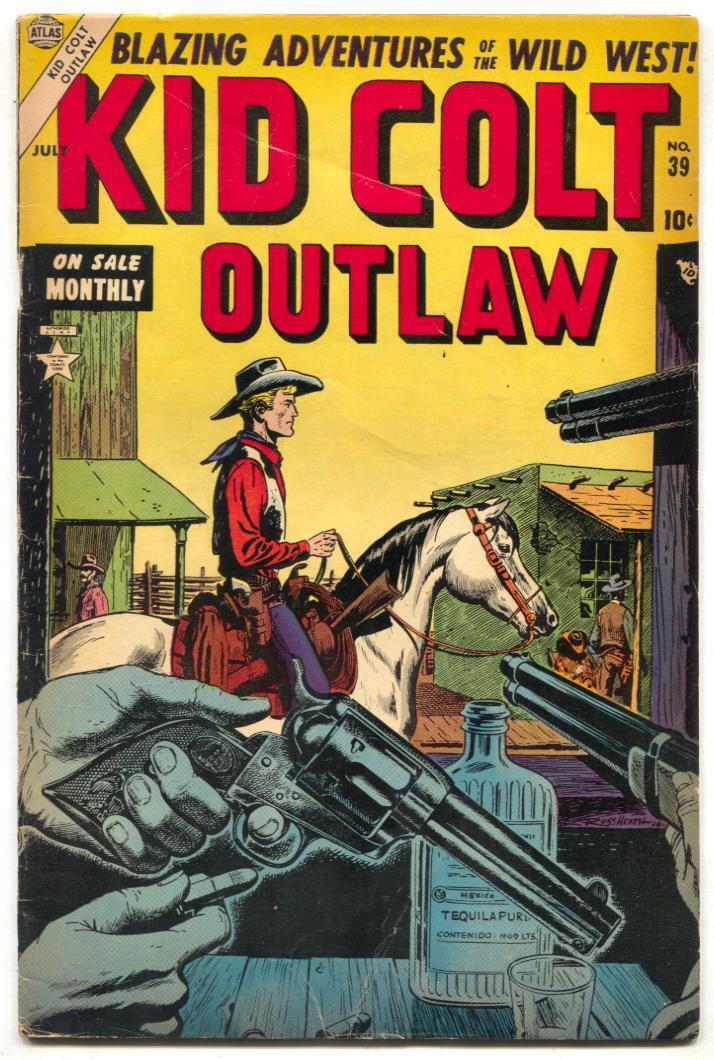 Grade: VG+Kid Colt Outlaw #39 1954- Black Rider- Tequila Cover VG+ Russ Heath cover. TEQUILA COVER. Black Rider. Grade: VG+ SKU: U2-30-240