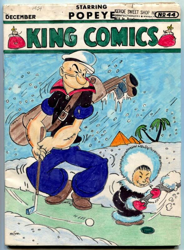 King Issue: 44 / Year: 1939 Condition: PPopeye cover and story. One half of first Popeye page missing. Cover replaced by black and white xerox which was hten hand colored by former owner Raymond Miller - one of the original founders of comic fandom. One of a kind piece of collecting history. Publisher: David McKaySku: DO-37-44 Over 100,000 mail orders processed! Buy with confidence. Track Page Views WithAuctiva's FREE Counter