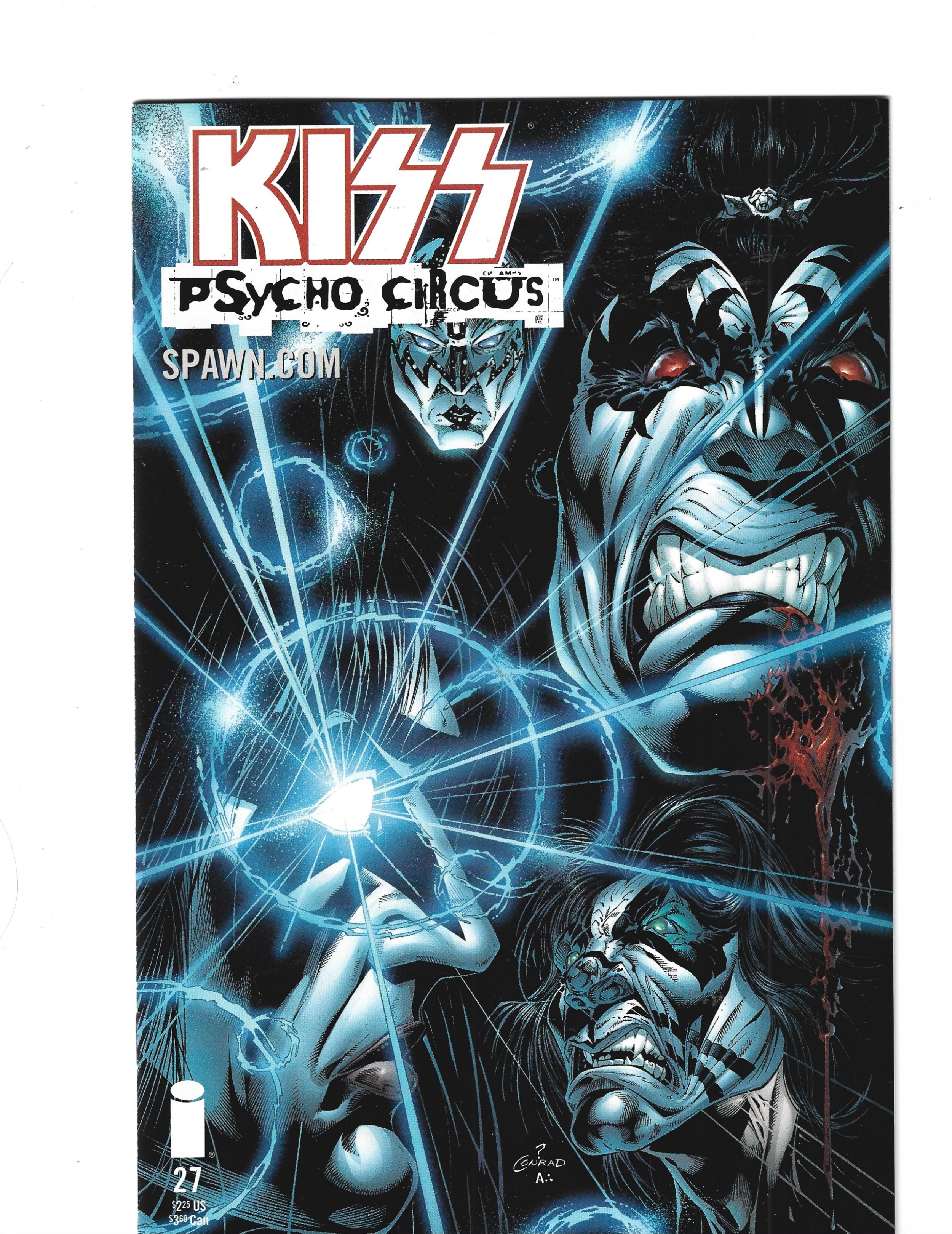 Kiss: Psycho Circus #27 (2000) I have graded the comic book, using the Overstreet Grading Guide, at FINE+ with the following defects: Light stress marks along the spine. The corners are rounded. There is yellowing of the pages.Seller Information