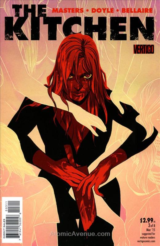 Item: Kitchen, The #3 | Publisher: DC/Vertigo | Cover Date: March 2015 | Writer: Ollie Masters | Artist: Ming Doyle | Cover Artist: Becky Cloonan | Storylines: Abattoir Blues | With Economy shipping, each additional comic ships for just 50 cents more to customers in the USA. This listing contains a stock photo and information from ComicBase™ and © Human Computing. The stock photo is for reference only. If you would like to see a photo of the actual item, please message us prior to purchasing.Seller Information