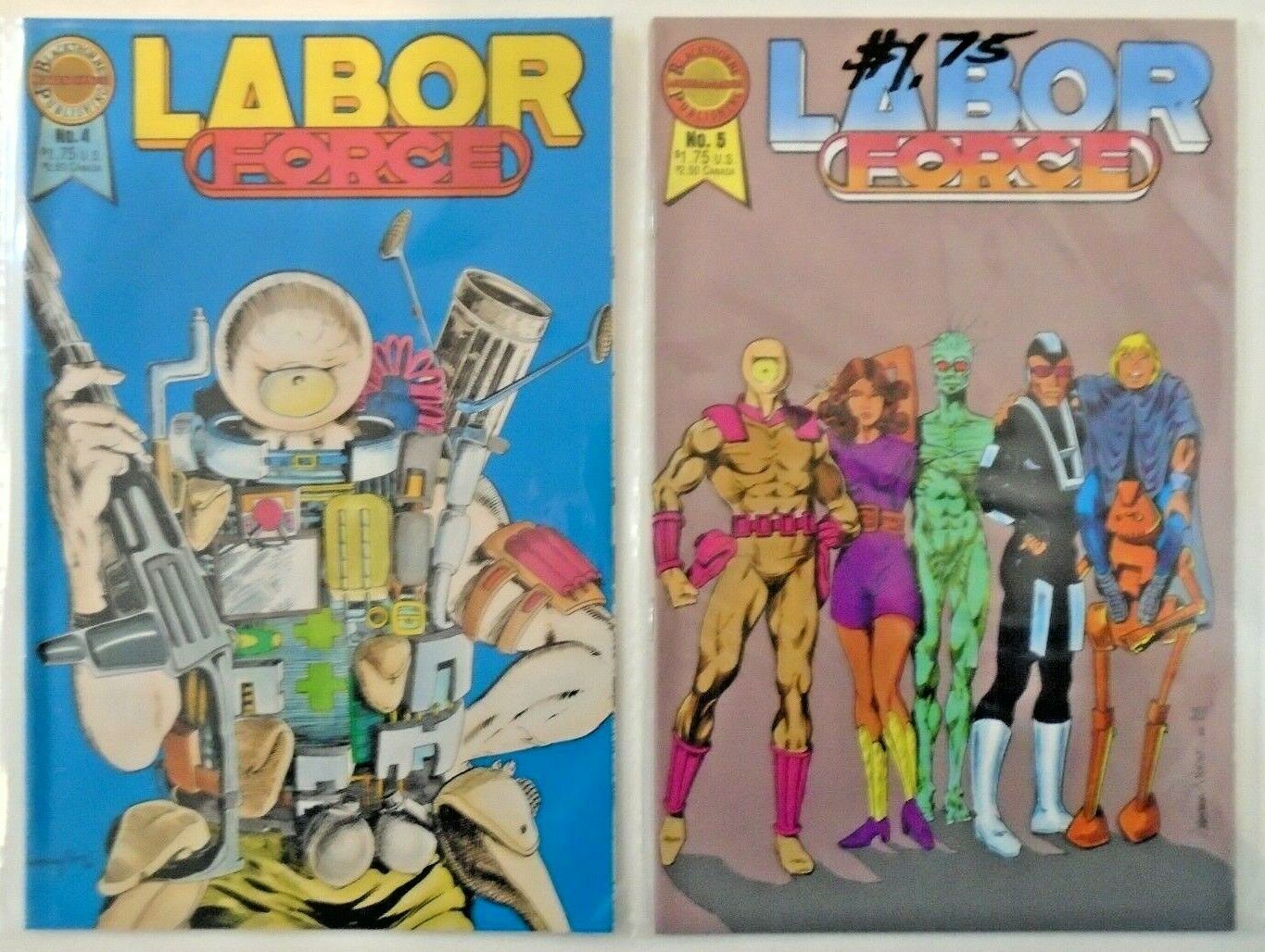 Condition: All books are nm- or betterLabor Force (1986) #1-5 (5 books)All books are bagged, and near mint-minus or betterWe encourage you to browse our store. If you buy multiple items, there's a good chance that you'll save a substantial amount on shipping by combining orders into one box.Friendly Frank's was started in 1978 with a $40 investment. We started Friendly Frank's Distribution in 1982, the regional distributors Co-Op jam in 1983, the Comic Book Legal Defense Fund in 1986, and B-Bop Comics in Kansas City in 1999. A member of the 100 million sold club. Largest buyer and seller of old comics in Kansas and Missouri. Thank you!