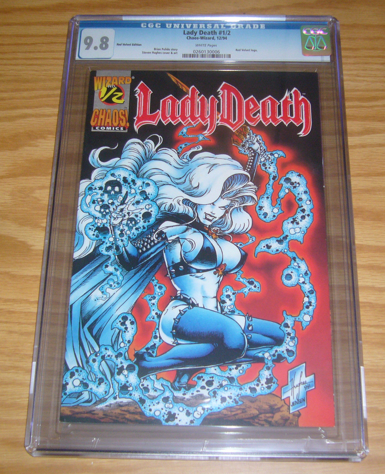 Item: Lady Death #½ Publisher: Chaos Comics Cover Date: December 1994 Writer: Brian Pulido Artist: Steven Hughes OTHER INFO: red velvet logo variant. As of September 2015, no copy has been graded higher by ... Read More