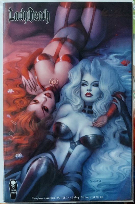 Lady Death Blasphemy Anthem #2 NM Sultry Edition Signed by Brian Pulido with COA. All comics from me will be bagged and boarded and free item with purchase while supplies last.
