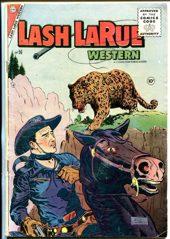 Grade: VGLash LaRue #56 1955-Charlton-Stan Campbell-B-Western film star-VG -Stan Campbell cover -B-Western film star comic stories -Spine roll Grade: VG SKU: PULP006-174