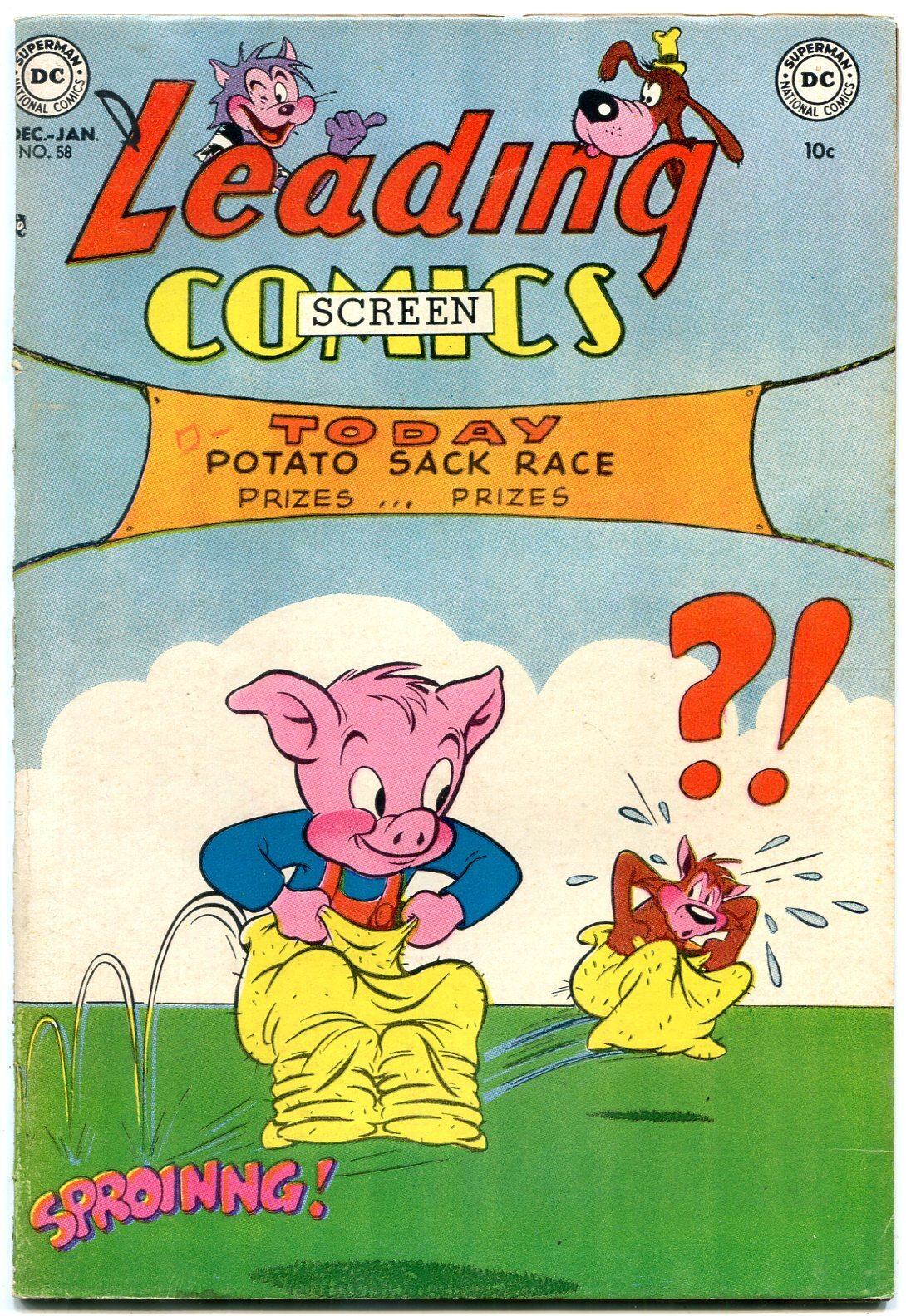 Grade: VF-Leading Comics #58 1952- Peter Porkchops- Golden Age DC- VF- Peter Porkchops. Bizarre humor. Potato sack race cover. Grade: VF- SKU: U2-94-315