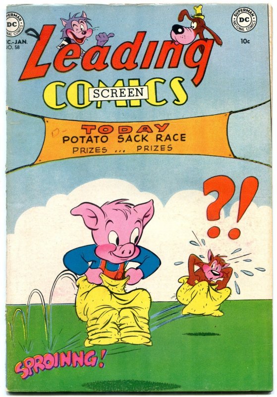Grade: VFLeading Comics #58 1952- Peter Porkchops- Golden Age DC- VF Peter Porkchops. Bizarre humor. Potato sack race cover. Grade: VF SKU: U2-94-316