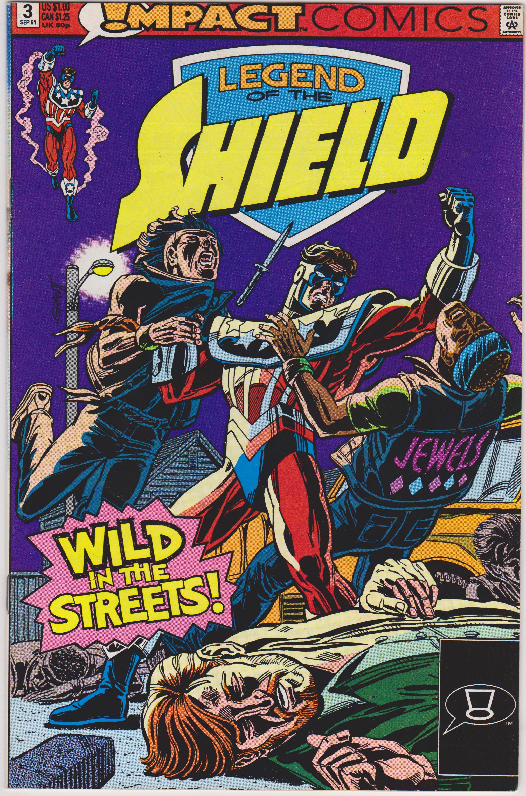 Legend of the Shield #3 by DC/Impact Comics copyright 1991. I have graded the comic book, using the Overstreet Grading Guide, at FINE+ with the following defects: Light stress mars along the spine. The corners are rounded. There is yellowing of the pagesSeller Information