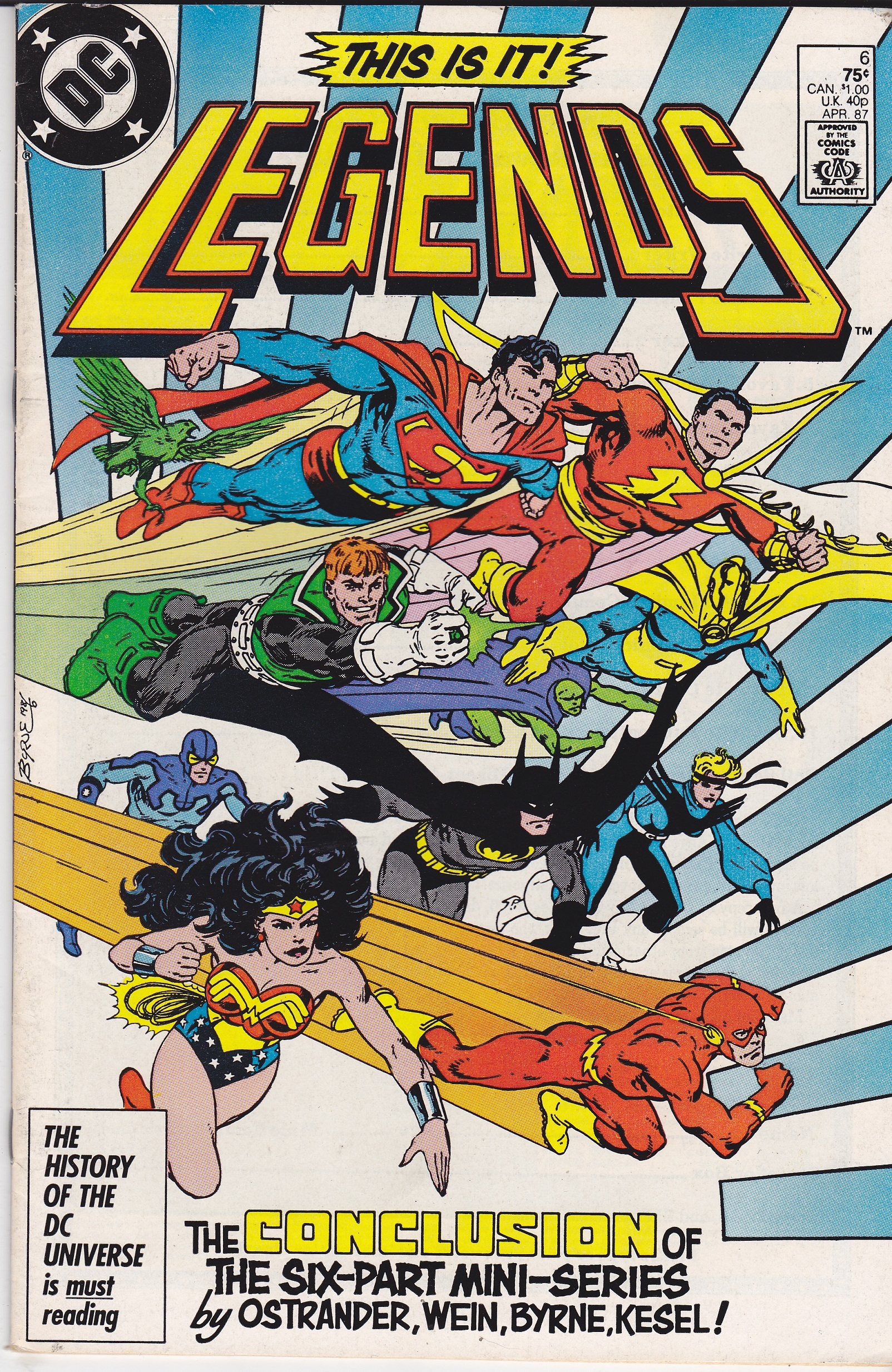 Legends #6 by DC Comics copyright 1986. I have graded the comic book, using the Overstreet Grading Guide, at FINE with the following defects: Light stress marks along the spine. The corners are rounded. There is yel ... Read More