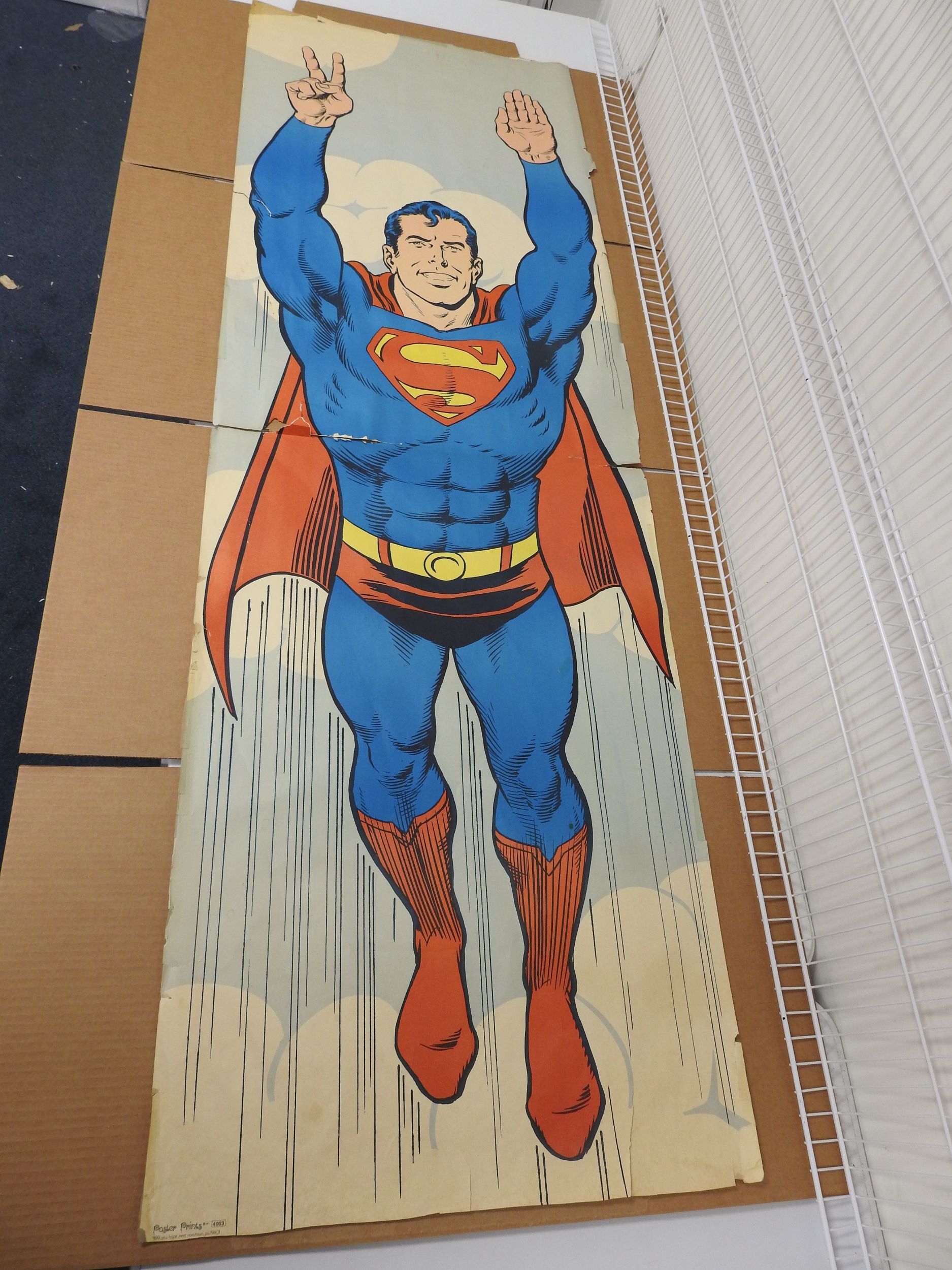 Lifesize Superman Poster (1971) large tears and tape present on poster