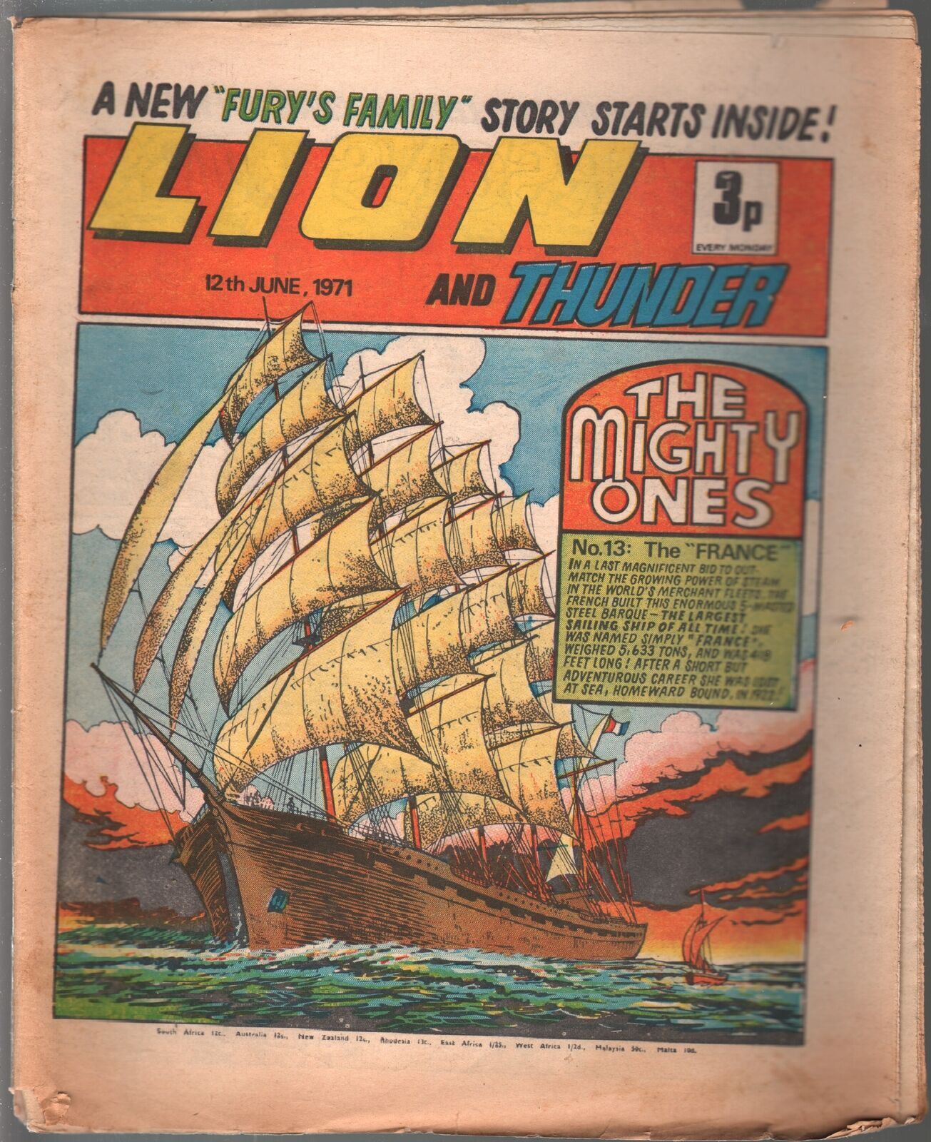 Lion and Thunder 6/12/1971-IPG-sailing cover--sci-fi-horror-G/VG