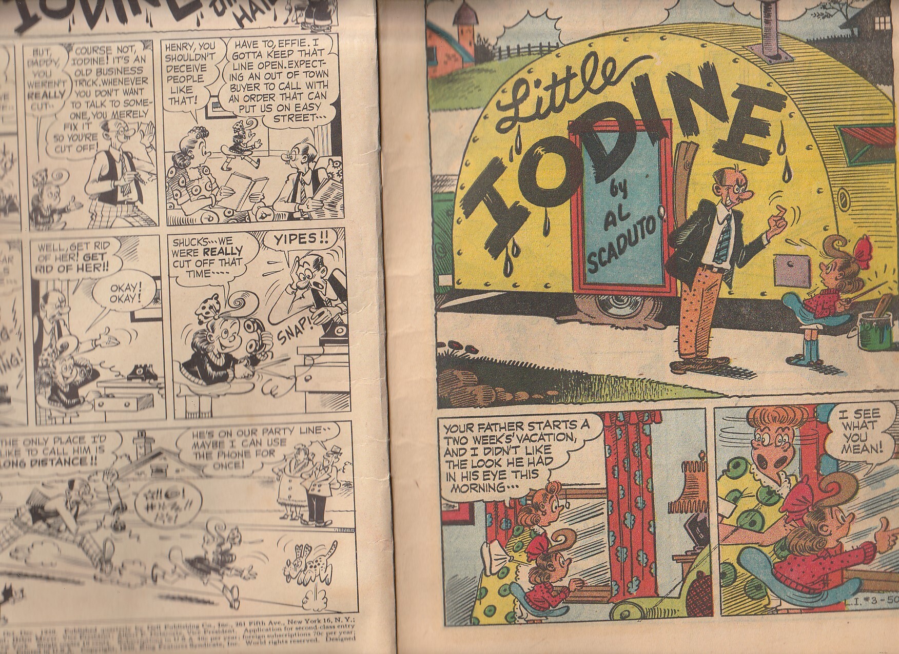 The feminine alternative to Dennis the Menace by such creator/artists such as Jimmy Halto, Al Scaduto and W. Y. Ferrol. Bonus Little Iodine’s sidekick, Sharkey by John T. Leewing