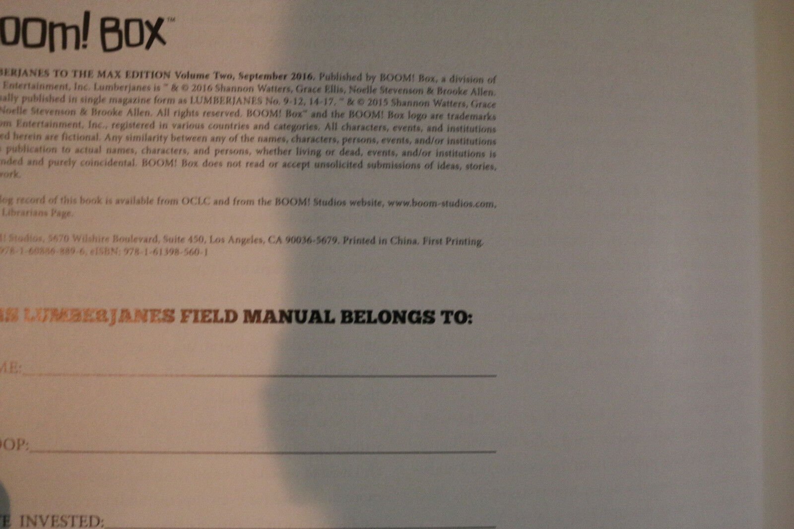 Condition: May have some light shelfwear from being store stock.LumberJanes to the Max Edition Vol.2 Hardcover - Stevenson & Watters - 2016 Size: 7 x 10.5 x 1This item was uploaded by Bobby. If you have any specific questions or requests, please ask us prior to ordering and we'll accommodate you. If there are any problems with your order whatsoever, please message us before leaving feedback and we'll be happy to work with you to fix the situation! We ship worldwide, combine purchases, and charge exact shipping. The price may vary based on size, weight, and location. If you are automatically overcharged for shipping, message us and we'll be happy to revise the invoice or refund you the excess amount. If you have any questions regarding shipping, please message us.International Buyers - Please Note: Import duties, taxes, and charges are not included in the item price or shipping cost. These charges are the buyer's responsibility. Please check with your country's customs office to determine what these additional costs will be prior to bidding or buying. Payment can be made by PayPal and credit cards directly.70,000+ items in total in my Hip store! Frequently Asked Questions: When are your operation hours?Our in office hours are Monday - Friday, 11 am - 9 pm. We are not open on weekends, so if you send us a request on Friday evening we won't get back to you until Monday afternoon. Please don't take it as us ignoring you! We will work on your request Monday and get back to you as soon as we can. Also, if you order from us on a Friday evening or Saturday morning we won't start processing your order until we open on Monday. That means on Monday it will be pulled and prepped for shipping, then picked up by the postman on Tuesday morning.When will you ship my item? The tracking hasn't moved.We realize you're eager to get your item, so if the tracking hasn't moved in a few days please don't be concerned. We give the postman a lot of packages daily, sometimes as many as 100, so he does not scan each item for us upon pickup as he says it would be too time consuming for him to do so. If you get a tracking number from us, that almost always means your item was picked up by the postman the next business day. The USPS is also imperfect. There are times when the tracking won't even show movement until it's in your area's regional distribution center. This is normal in our experience. Is the item pictured the exact one for sale?Yes! We don't use stock images and go through great lengths to photograph everything we list. The item pictured is exactly what you should receive UNLESS it is a fixed price listing with multiple items available.How do you grade?Grading is very subjective, but we are professionals with decades of grading experience between us who try the best we can to accurately describe the condition of the items we list.Anthony is an Overstreet Comic Book Price Guide Advisor Do you combine shipping? Yes, of like items. Such as: several comics can fit in one cardboard mailer, as can more than one record. Multiple art pages can easily be combined because they are light and thin. Where combined shipping differs is with size and weight. For instance, two statues require a much bigger box. Same goes for CGCs, as the package gets bigger and heavier as you go. Do you ship well? I've had some bad experiences... You needn't worry; we are professionals who value your business and want your item to arrive safely as much as you do. I have been collecting for over 30 years. I send out items the way I would like to receive them. The tracking says my item is "OUT FOR DELIVERY" in New Jersey. Why is that?If the tracking indicates that the item is "OUT FOR DELIVERY" in NJ don't worry, it's just what the tracking says when it's carried over from the postman to the sorting center. This is normal for our Post Office and will not impact you receiving your item in a timely matter.What is the difference between a RUN and a LOT?Good question. A RUN will be a collection of consecutive issues with no breaks in between them. If it says RUN of #s 1 - 50 you will receive 50 consecutive comics. A LOT will be within a certain range, so a 50pc LOT will not contain consecutive books.I changed my mind after successfully winning the auction or fixed price listing, will you cancel the transaction? Please only bid or hit BUY IT NOW if you are willing to follow through and pay for the item, we will not cancel the transaction. As a seller, Hip penalizes us every time we cancel an order, so it is detrimental to our business to do so. Therefore if you will not pay, then you'll have to let Hip cycle this to an "unpaid item" and accept whatever action Hip deems necessary. 70,000+ items in total in my Hip store! MEET OUR STAFF: Pictured left to right, my employees: Chris, Connelly, Bobby, & Shannon alongside my family: Sharon, Myself (Anthony), Cameron, AJ, and Jamison SnyderAS SEEN ON TV Anthony is always interested in doing business and answering your questions. If you are new to collecting or have something to sell, feel free to ask any questions that you may have. 65,000+ items in total in my Hip store! Small, Regular, and Large Portfolios available; see my Hip store! Froo | Froo Cross Sell, Free Cross Sell, Cross promote, Hip Marketing, Hip listing Apps, Hip Apps, Hip Application