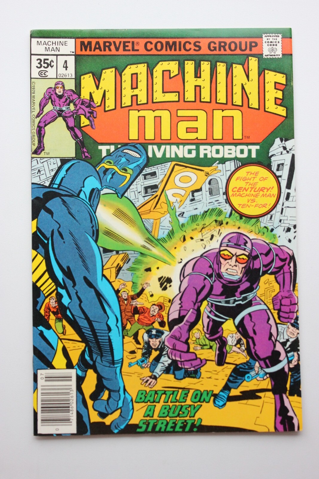 Grade: VFNMMachine Man #4 (1978). This comic is in VFNM condition. This is a quickly assessed grade. Please feel to ask any questions. We do accept returns if you feel the grade is off. Combined Shipping is offered but it must be addressed after the purchase due to the shipping settigns we use. WE refund 3.96 per issue for shipping after the first comic or magazine purchased