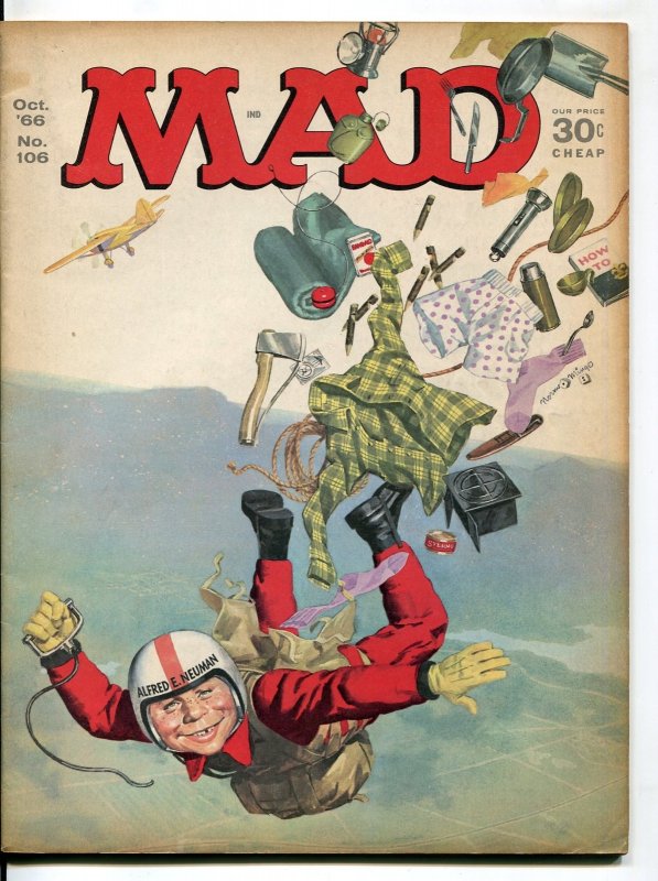 Grade: FNMAD Magazine #106-1966-Mingo-Drucker-Martin-Brandel-FN Mad magazine #106. October 1966. Norman Mingo cover. Art by Mort Drucker, Max Brandel and Don Martin. Fine condition. Grade: FN SKU: U3-39-116