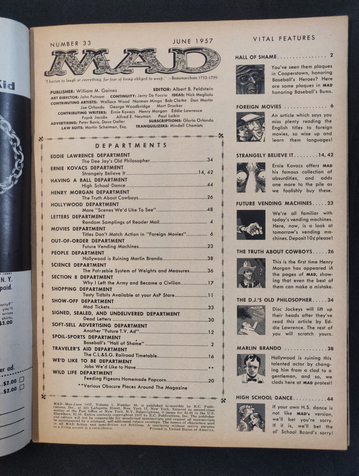 MAD Magazine #33 June 1957 (6/6.5) Norman Mingo Cover