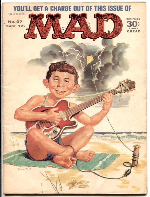 Grade: FNMAD Magazine #97-1965-Mingo-Martin-Jaffee-Drucker- FN Mad magazine #97. September 1965. Art by Al Jaffee, Mort Drucker and Don Martin. Norman Mingo cover. "Being rich is better than a puppy". Light chipping in edges of front cover. Grade: FN SKU: CK29-101