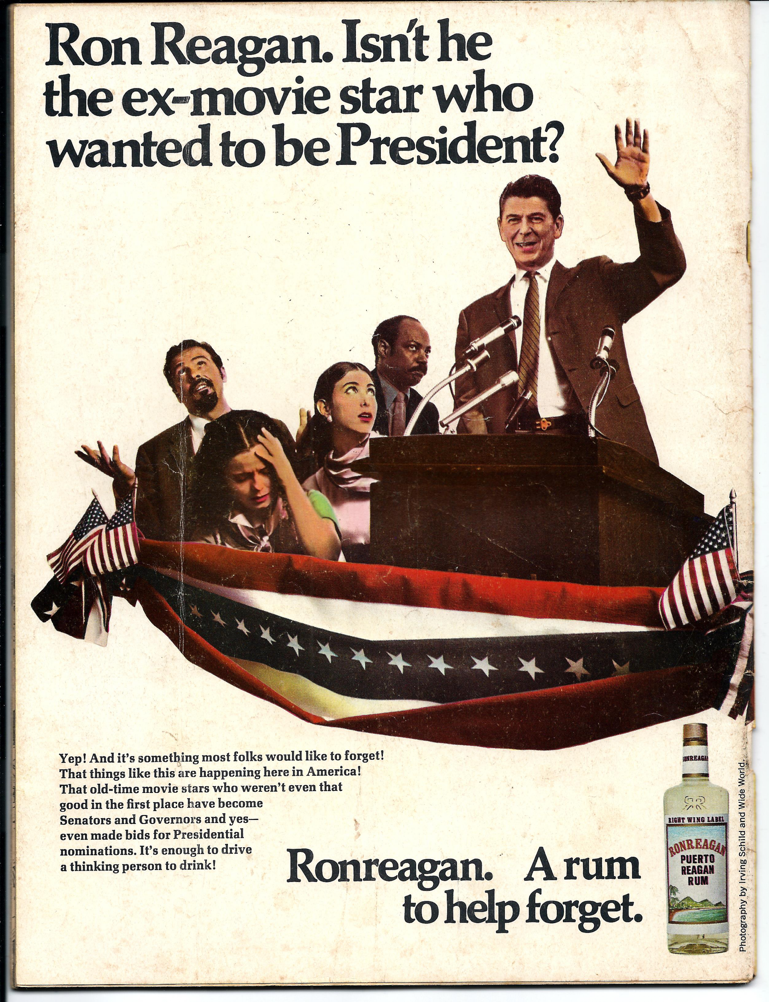 Cover art by Norman Mingo. "A Mad Look at Modern College Courses" photo story, script by Max Brandel; College course descriptions are illustrated with photos of college rioting for ironic effect. "On a Cruise to a South Sea Island," script and art by Don Martin; Two tourists find a surprise in a Polynesian wishing well. Cartoons in the margins by Sergio Aragones. "Boredom-12," script by Dick DeBartolo, art by Mort Drucker; In a parody of the TV series "Adam-12," two Los Angeles police officers patrol their district ignoring crimes unless they involve attractive women. "Spy Vs. Spy," script and art by Antonio Prohias. "Passionate Gun Love," script by Larry Siegel, art by Jack Davis; A niche magazine for people who really, really like guns. "A Mad Peek Behind the Scenes: At a Hospital," script by Larry Siegel, art by Al Jaffee. "The Kidney Transplant," script and art by Don Martin. "If Everyone Talked Like Don Rickles," script by Earle Dowd, art by Angelo Torres. "The Lighter Side of Wheels," script and art by Dave Berg; Satirical look at how people deal with objects with wheels. "Who Knows What Evil Lurks in the Hearts of Men? The Shadow Knows," script and art by Sergio Aragones; Series of cartoons where a person's shadow indicates what that person is really thinking. "Hoo-Boy, Columbus," script by Tom Koch, art by Mort Drucker; Parody of the film "Goodbye, Columbus"; a middle class Jewish man tries to date an upper class Jewish woman and suffers class discrimination from her family. "What Great New Chasm Has Been Discovered That Dwarfs Even the Grand Canyon" Mad Fold-In by Al Jaffee. Back cover phony ad for Ronreagan brand rum, intimating that former actors running for political office spurs alcohol abuse. 52 pgs., B&W. Cover price $0.35