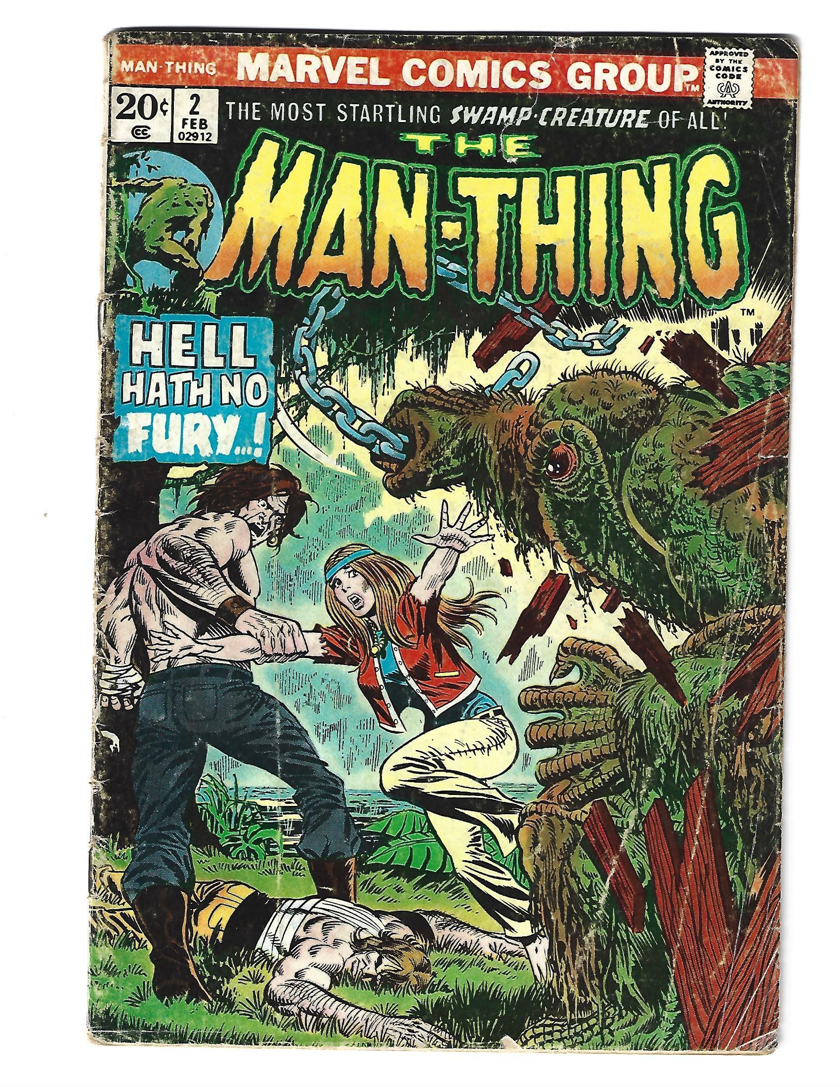 Man-Thing #2 (1974) . I have graded the comic book at GOOD with the following defects: Light and moderate stress marks along the spine. The corners are rounded. Folds in the upper and lower right corners. Wrinkles through out the cover. Yellowing of the pages.Seller Information
