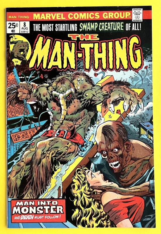 Mid to higher grade copy of man-thing 8, see pic of actual book you are buying!The man-thing confronts another monster whose touch of death may exceed his own burning grasp! Mike ploog cover!