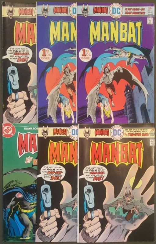 MANBAT (1975-1976) #1 (2 copies, #2 (3 copies) and MANBAT (1984) #1. Overall average grade for the lot is VF 8.0. 2022 Overstreet value for this 6 issue group is $90.00 based on condition. (BS59)..... Items will be shipped in a USPS MEDIUM FLAT RATE PRIORITY BOX. Check out our store and save money by combining multiple purchases to save on shipping costs.