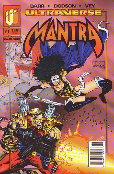 Item: Mantra #1 (Newsstand) | Publisher: Malibu | Cover Date: July 1993 | Writer: Mike W. Barr | Artist: Terry Dodson | Cover Artist: Hoang Nguyen | Appearances: Mantra (Eden Blake), Warstrike (Brandon Tark), Boneyard | Storylines: Reversal of Fortune | Notes: 1st Appearance of Boneyard; 1st appearance of Mantra (Eden Blake); 1st appearance of Warstrike (Brandon Tark); Origin of Mantra (Eden Blake); Ultraverse; newsstand edition | With Economy shipping, each additional comic ships for just 50 cents more to customers in the USA. This listing contains a stock photo and information from ComicBase™ and © Human Computing. The stock photo is for reference only. If you would like to see a photo of the actual item, please message us prior to purchasing.Seller Information