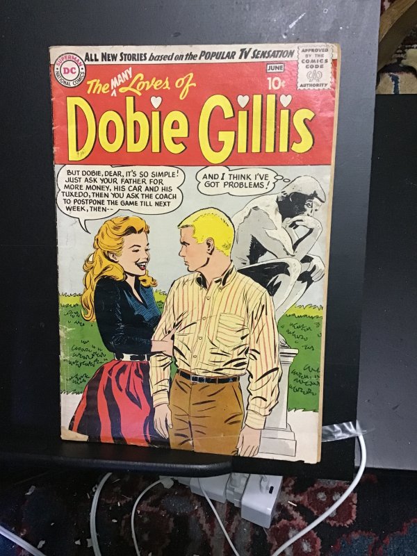 Many Loves of Dobie Gillis #1 (1960) Very rare first issue key! This book has deep rich color and decent eye appeal on this all time classic Donie and The Thinker statue cover Key! With cream/slight heavy cream inte ... Read More