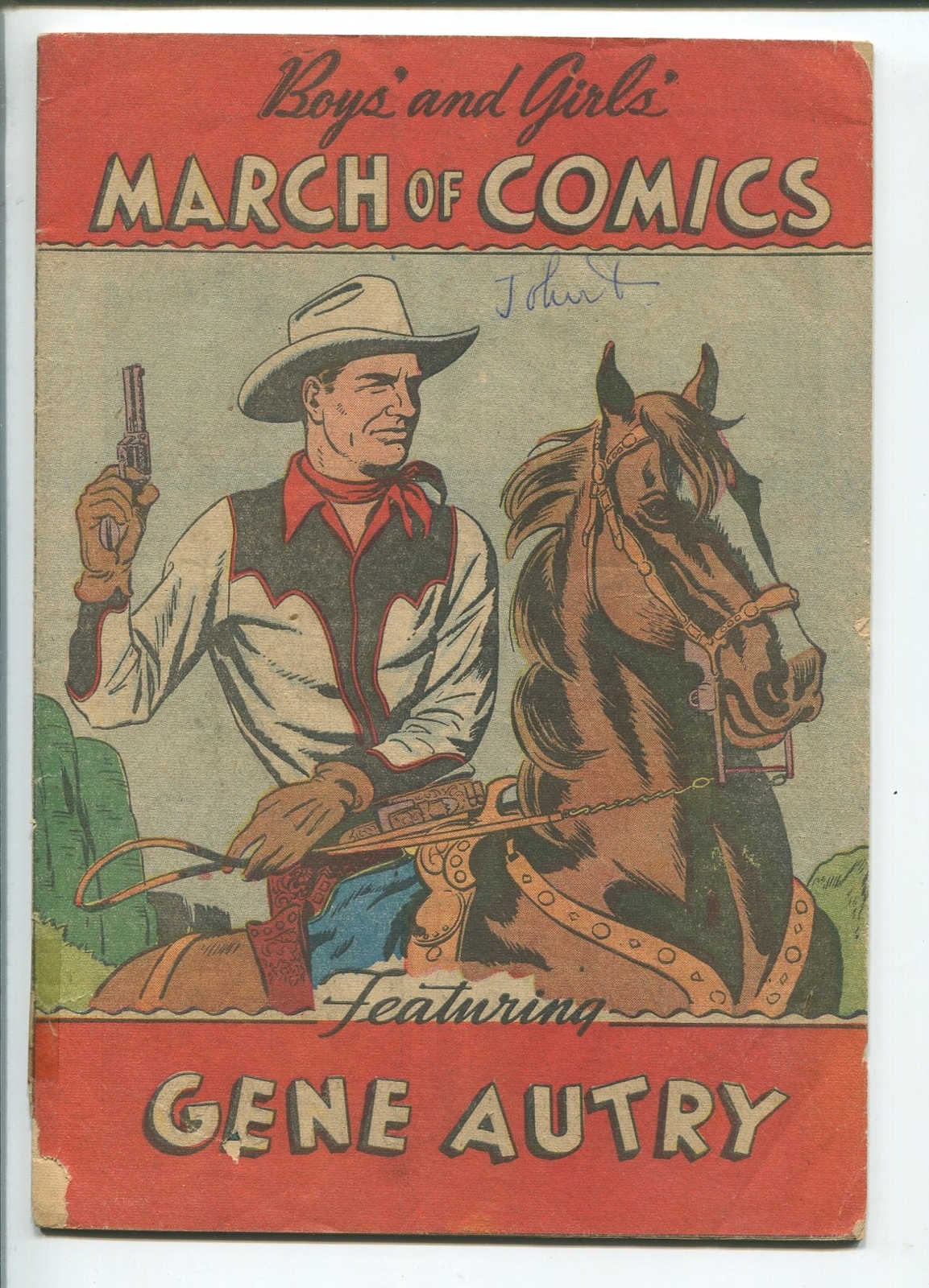 Grade: VG- March of Comics #54 1950- GENE AUTRY- VG- -Elusive Premium "Give-away" comic book Has a couple of small pieces missing from cover, tape Grade: VG- SKU: CK48-080