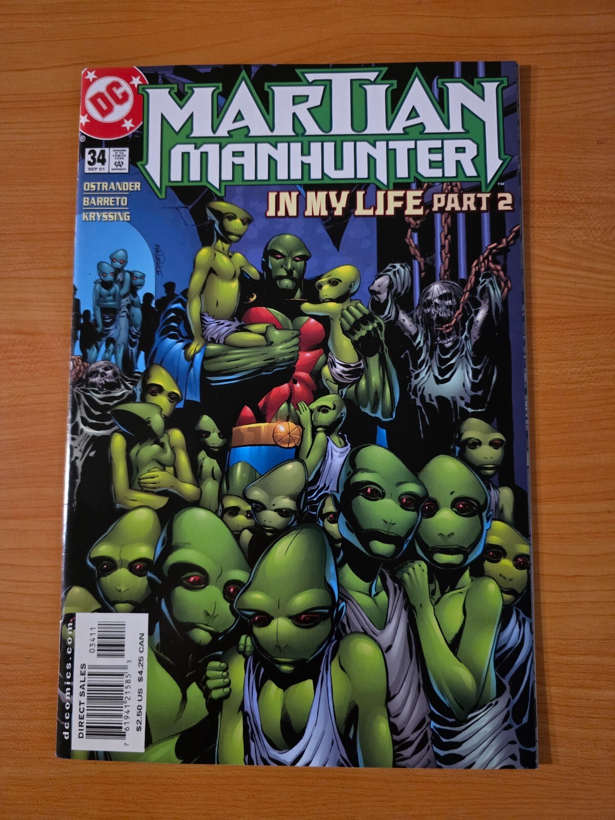 Item DescriptionMartian Manhunter #34 Direct Market EditionPublisher: DC ComicsPublished: 2001Item Grade/ConditionGrade: NEAR MINTFor more information about this grade and other grades, please see our grading standards.~ WE TAKE HIGH DEFINITION PICTURES OF OUR COMICS ~ For more detail use the ZOOM Function and check them out yourself! ~Shipping Info:United States: Comic Book & Magazine Orders of all sizes, big and small ship for a flat Single Shipping ChargeInternational: We use Calculated Shipping! ~ This insures that you get the LOWEST POSSIBLE COST! ~ Please give us one business day to calculate large orders! The Calculator for Hip is pretty bad for international, contact us if you are looking to order multiple books so we can help you make it work on the back end! As a courtesy to our customers, we insure all orders over 50$ US ~ YOU DONT PAY EXTRA!Delivery TimeWe process and ship all orders within 1 business days. Once shipped, estimated U.S. transit time is 2-10 business days; international 14-21 business days.(Orders placed on Friday afternoon as well as weekends will be shipped the next business day as we do not ship on the weekends).PackingOmnomax Traders has mastered packing to ensure our orders of a "damage-free transport."Using the following methods, we have seen a nearly perfect 99% success rate for undamaged comics!Here is how our orders ship:All Orders :Bagged AND Boarded, ALWAYS NO EXCEPTIONS!Shipped in a Gemini Comic Mailer OR Tightly secured between 4x stiff pieces of corrugated cardboard (double Sandwiched)Sealed on all 4 sides with strong packing tape (Items doesn't even wiggle).:*Now this method is nearly perfect! however we have seen damage happen to items ( only once or twice a year ) ~ this is often due to bad handling by the postal service. Always remember to contact us if this happens! we are committed to quality service!*Offers History
