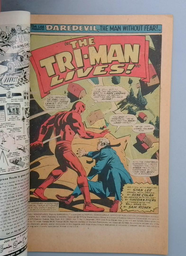 MARVEL ADVENTURE FEATURING DAREDEVIL - A Marvel Comics Group publication from December 1975, priced at 25 cents. This issue features the story _"The Tri-Man Lives!"_ showcasing Daredevil, the Man Without Fear, in a ... Read More