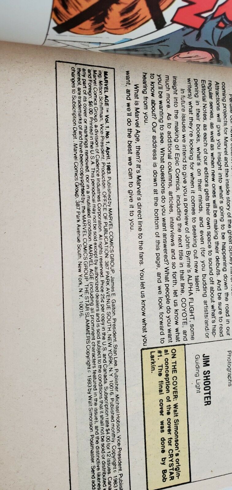 Marvel Age #1 1983 Marvel Crystar Walt Simmon