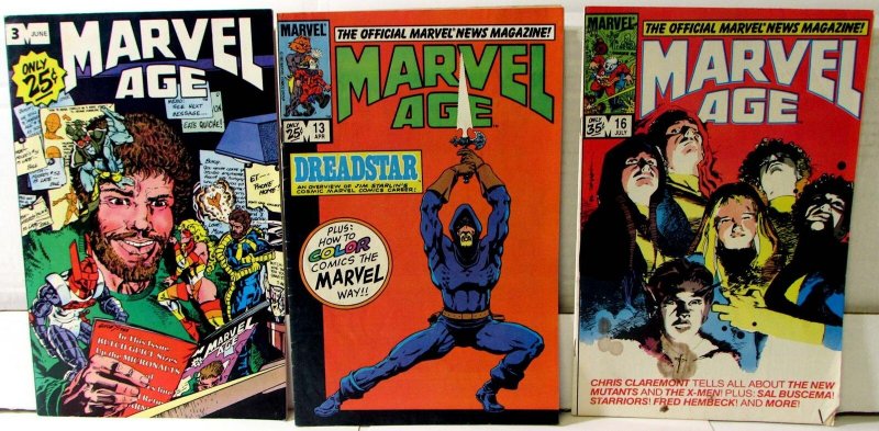 Marvel Age Lot 3 #3, 13, 16 1983 Marvel Micronauts Dreadstar X-Men Comics