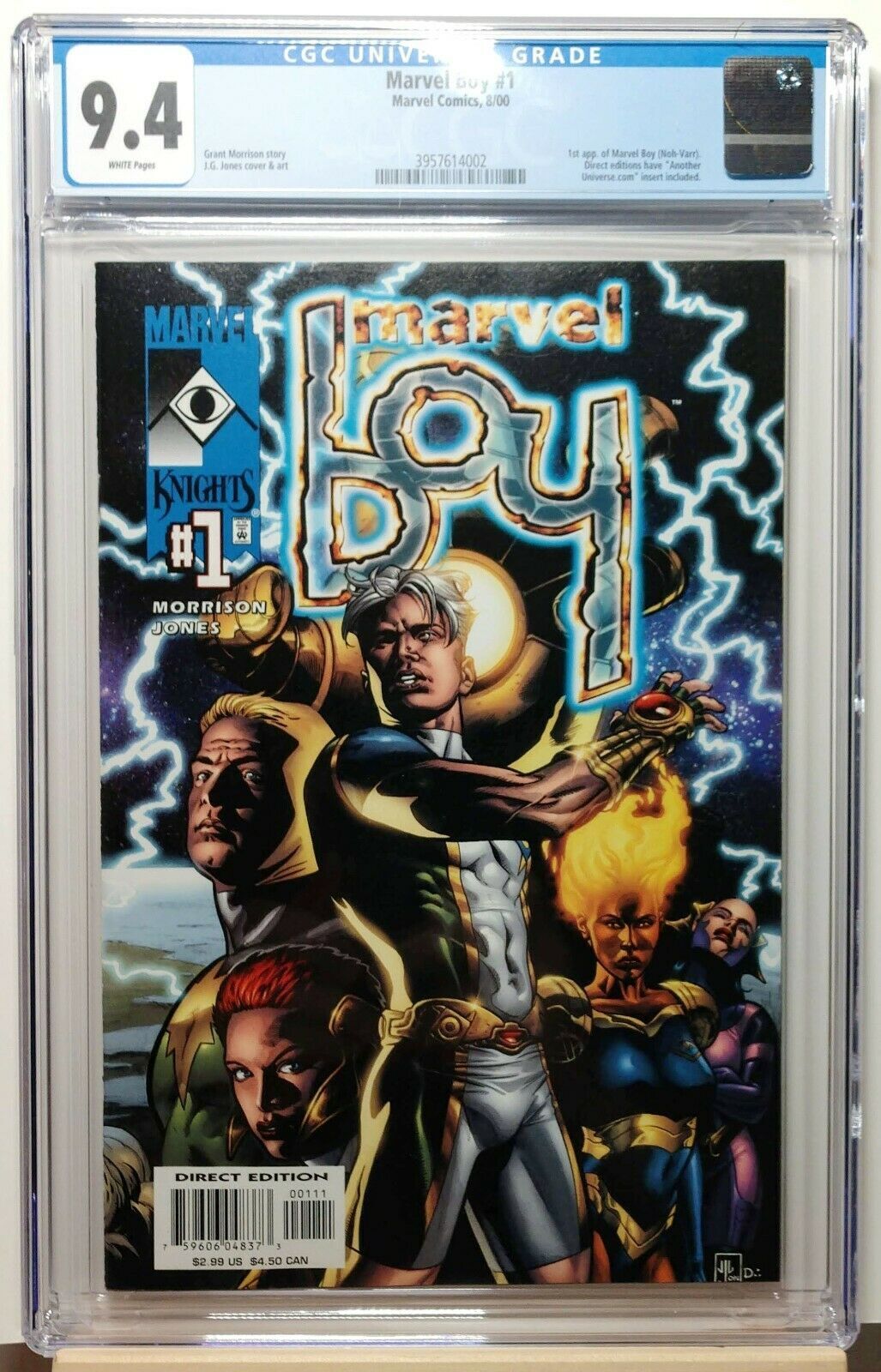 Marvel boy #1, 1st appearance of marvel boy, noh-varr. 1st appearance of star splendor, mother of noh-varr. 1st appearance of captain glory, noh-varr's father, an alternate reality counterpart of the main marvel universe captain glory. 1st cameo appearance of exterminatrix. 1st appearance of doctor midas. The book is graded by cgc at a 9.4.Don't like the price. My prices are NOT set in stone. Give me your best offer, and let's do some negotiating. I want to make sure you are satisfied and able to take home a great book. CGC or CBCS graded all my books. This way, you know for sure where the book stands. Grading takes out the guessing of the value. Lowball offers will be ignored.