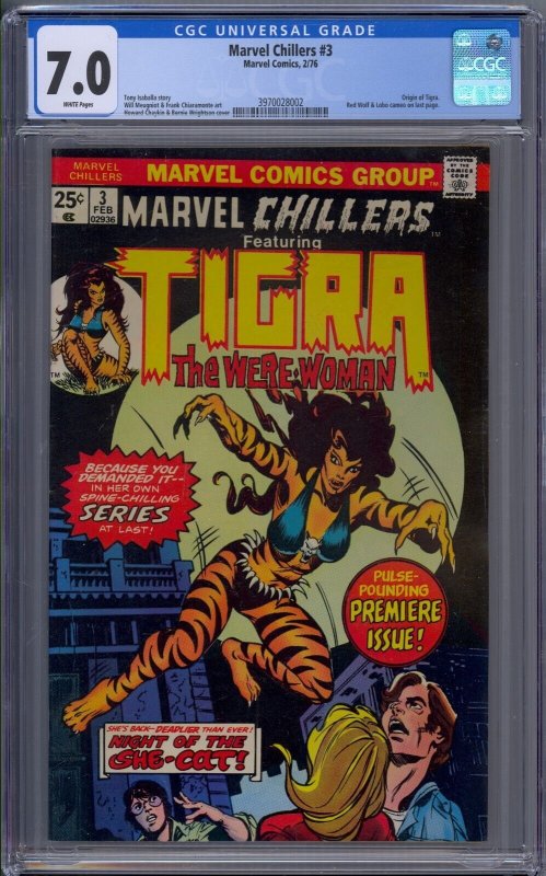 Marvel Chillers #3 1976 Marvel Comics CGC 7.0 1st app Tigra White Pages