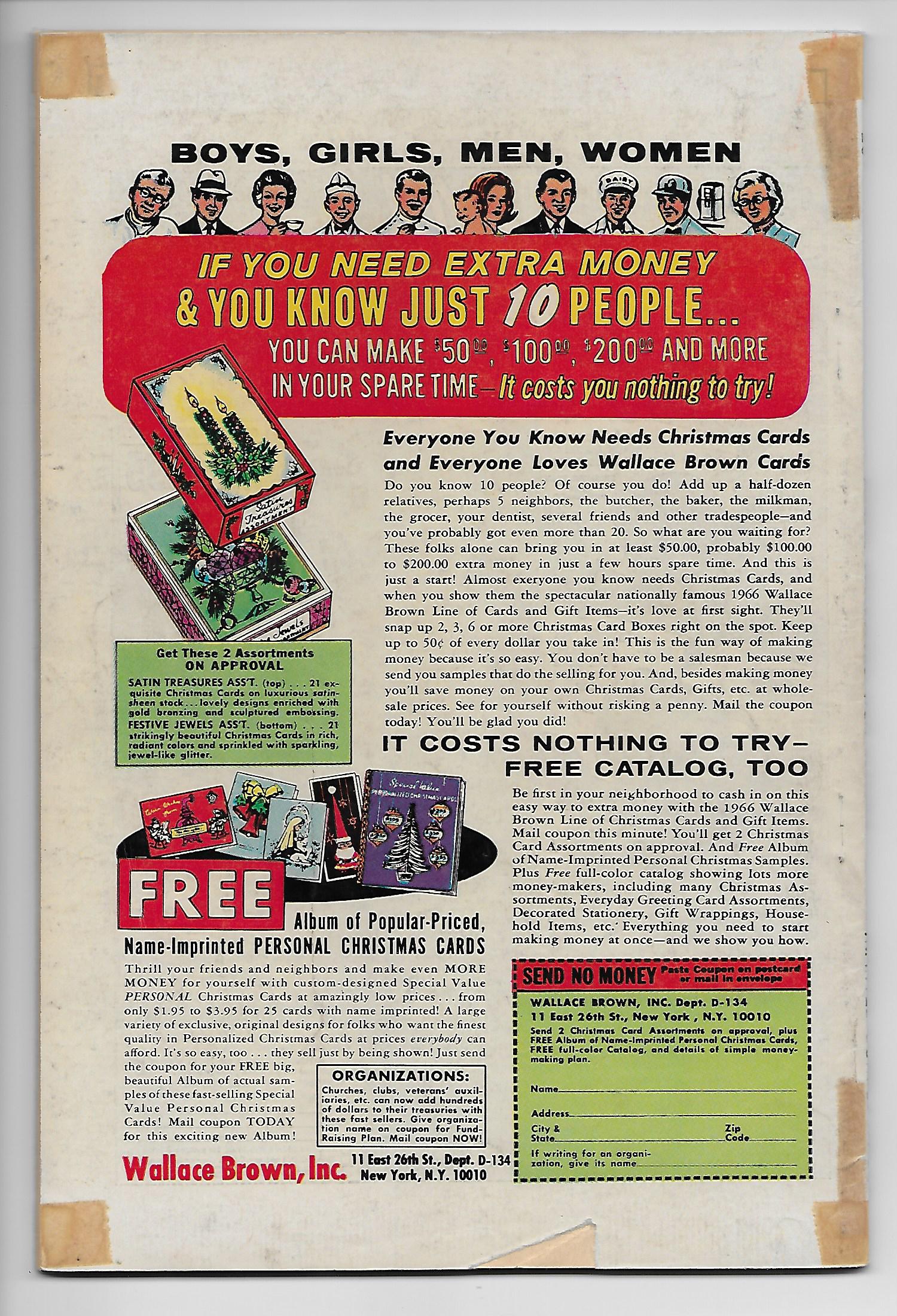 Up for sale is Marvel Collector's Item Classics #5 reprinting Fantastic Four #8, Tales of Suspense #42, Strange Tales #114 & Incredible Hulk #4 from Marvel Comics circa 1966. The estimated grade is VG-. Please note, there's a piece missing from the bottom of the back cover and there are tape glue stains on the corners. It appears someone put tape on the corners at some point in the books life as a "preventative measure" because there are no tears or spine splits at the corners to speak of. The tape has long since dried up and flaked away, leaving the brown stains you see in the photos. There's no stickiness at those spots, just the brown stains. Other than these flaws, this comic is actually in really nice shape with almost no creasing, nice cover gloss and off-white supple interior pages. This is an opportunity to own this classic silver age issue for a reasonable price. The comic will come bagged and boarded.We here at Imagine That! Comics, Games and Collectibles pride ourselves on the honesty and integrity of our auctions.
