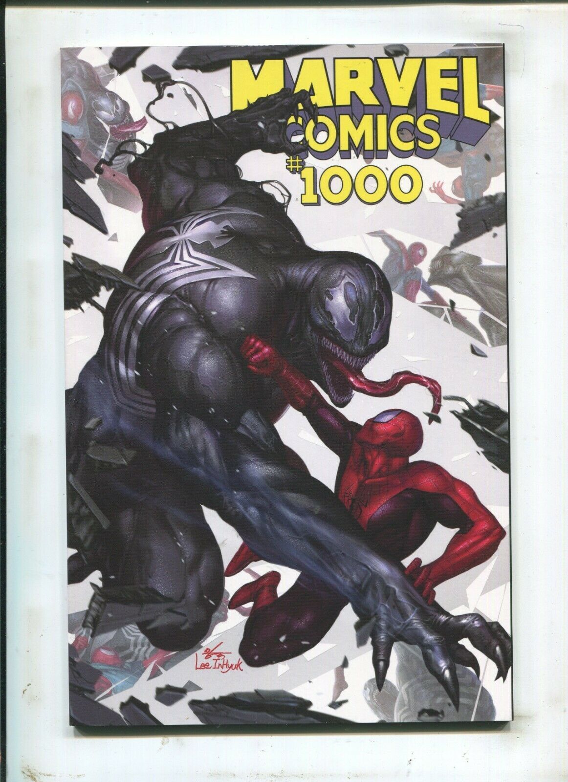 Grade: 9.2 Near Mint-Marvel Comics #1000 - Lee Inhyuk Variant (9.2OB) 2020Size: 7" x 10"This item was uploaded by ___LM___.WE COMBINE SHIPPING!!! Either wait for us to send you an invoice after you commit to buy or, if it makes you pay right away, message us back and we'll refund the excess charge. Buy as many single comic books as you want for one low flat shipping rate in the United States! International will be charged exact according to size and weight. If you have any specific questions or requests, please ask us prior to ordering and we'll get back to you as soon as we can. If there are any problems with your order whatsoever, please message us before leaving feedback and we'll be happy to work with you to fix the situation! We ship worldwide, combine purchases, and charge exact shipping. The price may vary based on size, weight, and location. If you are automatically overcharged for shipping, message us and we'll be happy to revise the invoice or refund you the excess amount. If you have any questions regarding shipping, please message us. International Buyers - Please Note: Import duties, taxes, and charges are not included in the item price or shipping cost. These charges are the buyer's responsibility. Please check with your country's customs office to determine what these additional costs will be prior to bidding or buying. Payment can be made by PayPal and credit cards directly. 120,000+ items in total in my Hip store! Frequently Asked Questions: When are your operation hours?Our in office hours are Monday - Friday, 11 am - 8 pm. We are not open on weekends, so if you send us a request on Friday evening we won't get back to you until Monday afternoon. Please don't take it as us ignoring you! We will work on your request Monday and get back to you as soon as we can. Also, if you order from us on a Friday evening or Saturday morning we won't start processing your order until we open on Monday. That means on Monday it will be pulled and prepped for shipping, then picked up by the postman on Tuesday morning.When will you ship my item? The tracking hasn't moved.We realize you're eager to get your item, so if the tracking hasn't moved in a few days please don't be concerned. We give the postman a lot of packages daily, sometimes as many as 100, so he does not scan each item for us upon pickup as he says it would be too time consuming for him to do so. If you get a tracking number from us, that almost always means your item was picked up by the postman the next business day. The USPS is also imperfect. There are times when the tracking won't even show movement until it's in your area's regional distribution center. This is normal in our experience. Is the item pictured the exact one for sale?Yes! We don't use stock images and go through great lengths to scan or photograph everything we list. The item pictured is exactly what you should receive UNLESS it is a fixed price listing with multiple items available. Can you issue a COA? We can, upon request. Please make sure you leave us a note while checking out and shoot us a message immediately after requesting one, just to be sure. How do you grade?Grading is very subjective, but we are professionals with decades of grading experience between us who try the best we can to accurately describe the condition of the items we list. Anthony is an Overstreet Comic Book Price Guide Advisor Please see the grading chart below for a breakdown of how we grade: NOTE: We don't grade any raw books higher than 9.2, as once you go higher than that grading gets really subjective. If you buy a NM book from us, it may very well be higher than 9.2 but we play it safe and grade conservatively. 9.2 NM Near Mint 9.0 VF/NM Very Fine/Near Mint 8.5 VF+ Very Fine+ 8.0 VF Very Fine 7.5 VF- Very Fine- 7.0 FN/VF Fine/Very Fine 6.5 FN+ Fine+ 6.0 FN Fine 5.5 FN- Fine- 5.0 VG/FN Very Good/Fine 4.5 VG+ Very Good+ 4.0 VG Very Good 3.5 VG- Very Good- 3.0 GD/VG Good/Very Good 2.5 GD+ Good+ 2.0 GD Good 1.8 GD- Good- 1.5 FR/GD Fair/Good 1.0 FR Fair 0.5 PR PoorHow do you ship comics? We ship in rigid cardboard mailers to protect your comic book from the worst the mail system has to offer. Price varies based on the number of books you purchase, but we try to keep costs as low as we can and charge exact shipping. If it looks unusually high to you please send us a message and we'll be happy to double check for you. Do you combine shipping? Yes, of like items. Such as: several comics can fit in one cardboard mailer, as can more than one record. Multiple art pages can easily be combined because they are light and thin. Where combined shipping differs is with size and weight. For instance, two statues require a much bigger box. Same goes for CGCs, as the package gets bigger and heavier as you go. Do you ship well? I've had some bad experiences... You needn't worry; we are professionals who value your business and want your item to arrive safely as much as you do. I have been collecting for over 30 years. I send out items the way I would like to receive them. The tracking says my item is "OUT FOR DELIVERY" in New Jersey. Why is that?If the tracking indicates that the item is "OUT FOR DELIVERY" in NJ don't worry, it's just what the tracking says when it's carried over from the postman to the sorting center. This is normal for our Post Office and will not impact you receiving your item in a timely matter.What is the difference between a RUN and a LOT?Good question. A RUN will be a collection of consecutive issues with no breaks in between them. If it says RUN of #s 1 - 50 you will receive 50 consecutive comics. A LOT will be within a certain range, so a 50pc LOT will not contain consecutive books.I changed my mind after successfully winning the auction or fixed price listing, will you cancel the transaction? Please only bid or hit BUY IT NOW if you are willing to follow through and pay for the item, we will not cancel the transaction. As a seller, Hip penalizes us every time we cancel 